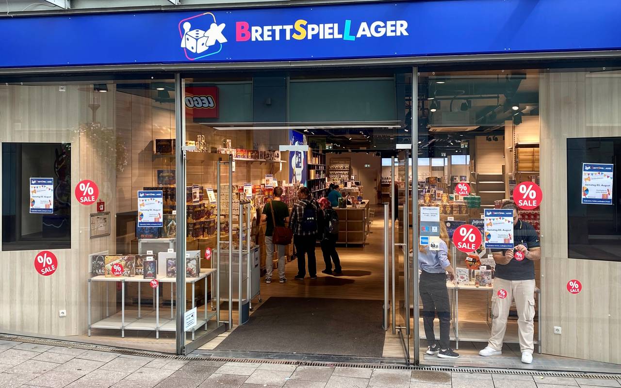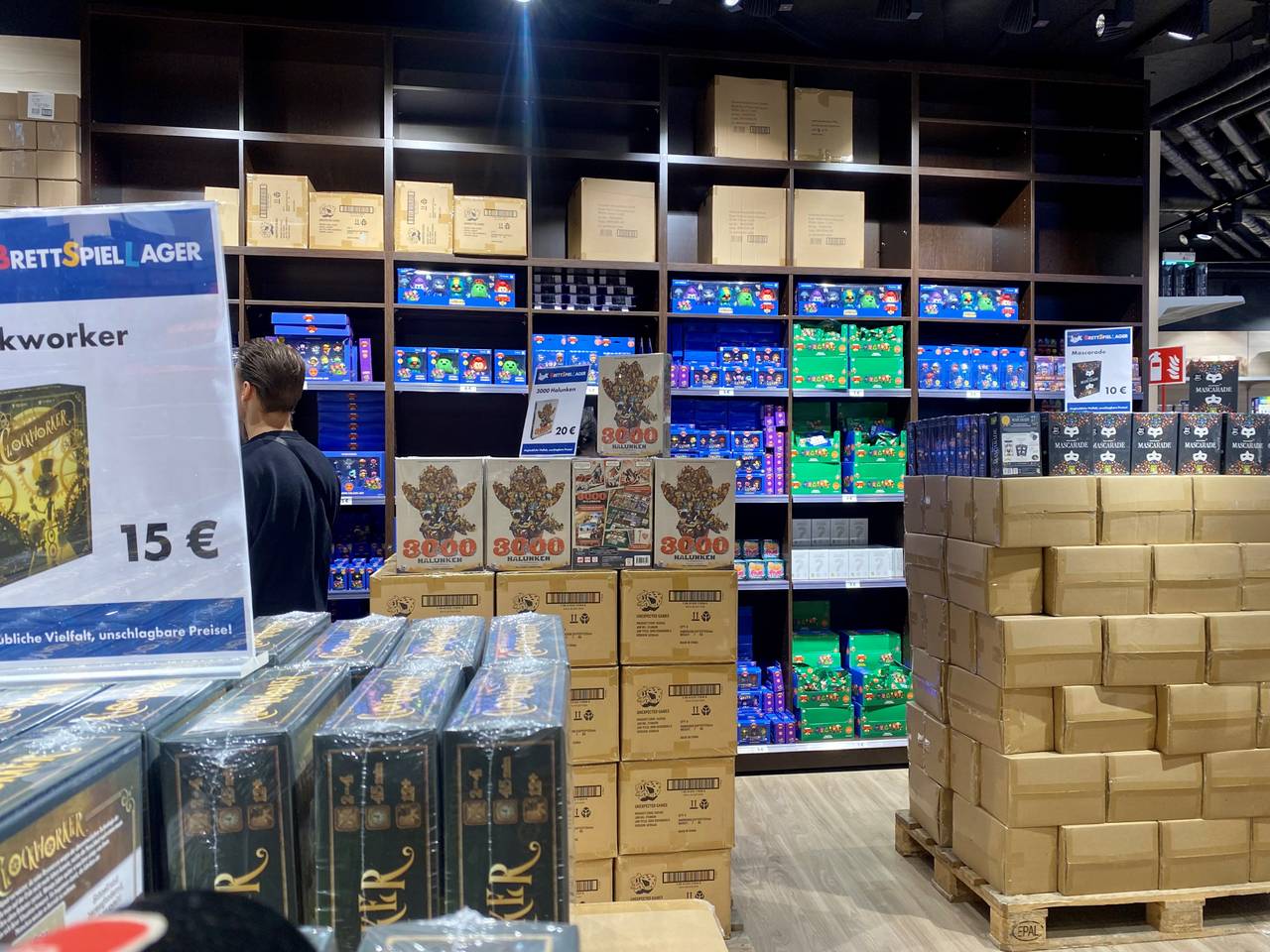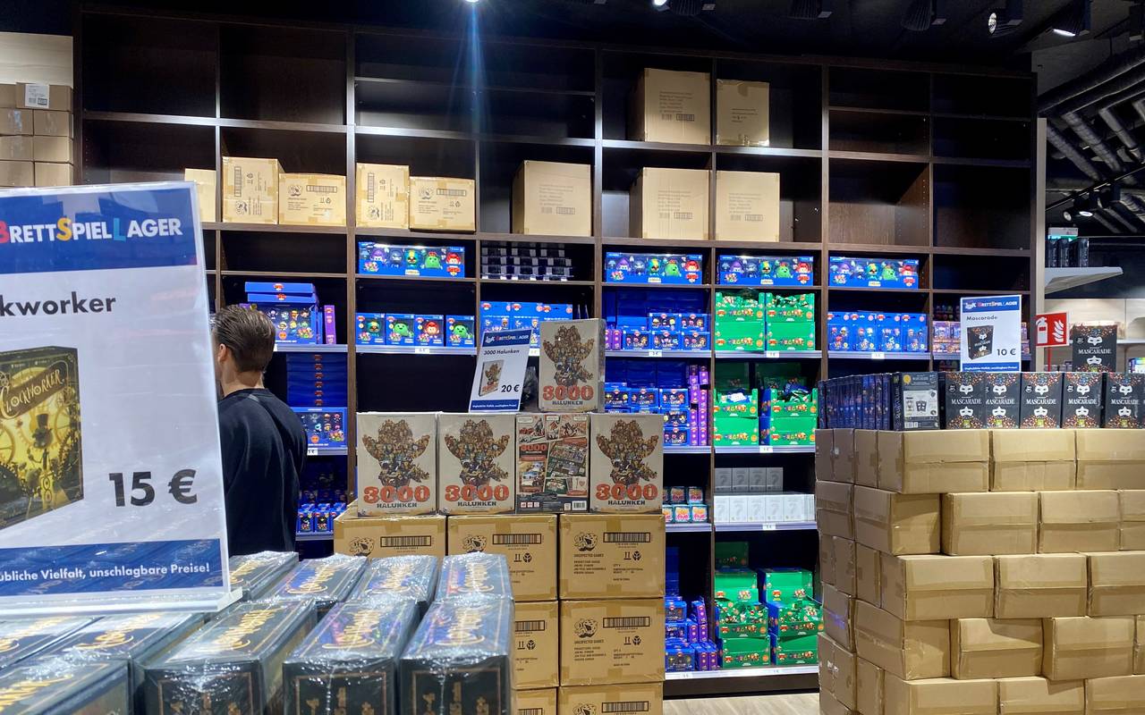 In der City von Essen werden Brettspiele ziemlich günstig verkauft. Am oberen Ende der Limbecker Straße hat ein Lager auf Zeit aufgemacht.