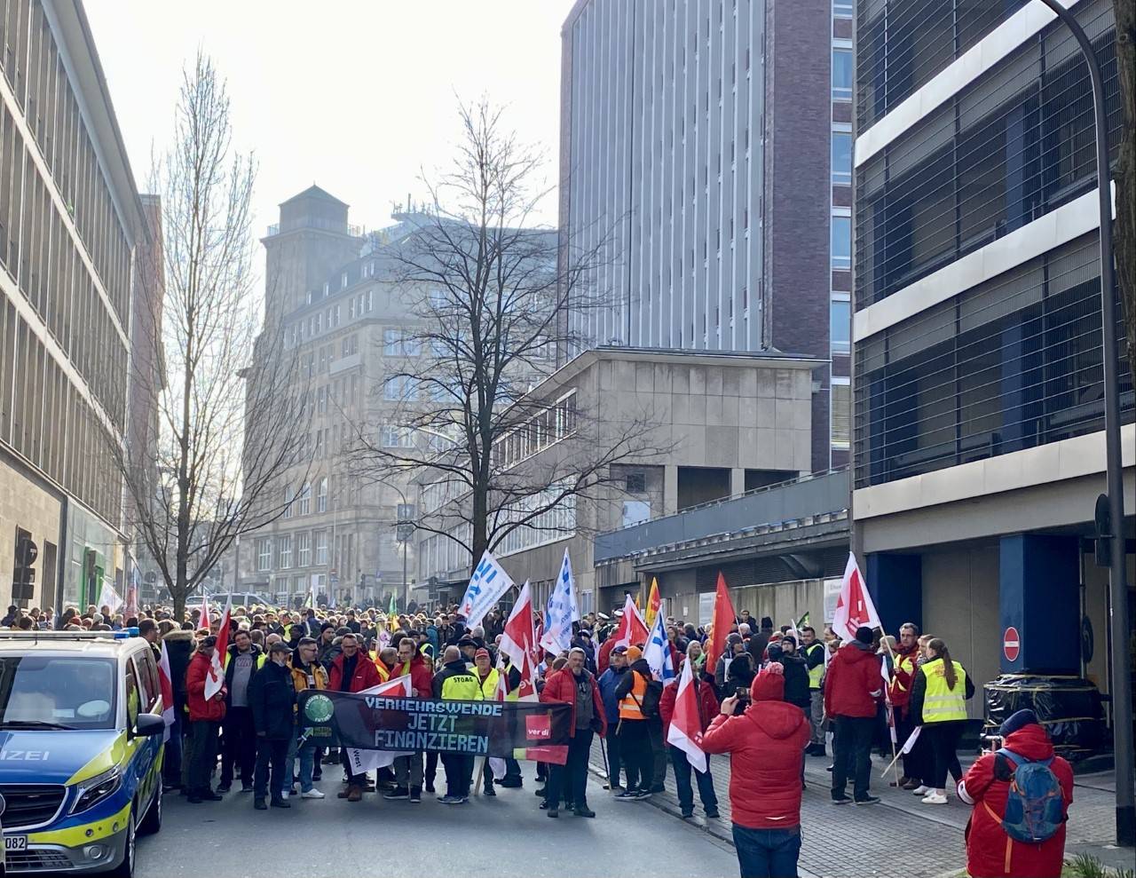 In Essen ist am Freitagnachmittag (03.03.23) eine große Demonstration in der Innenstadt geplant. Die Teilnehmer ziehen durch weite Teile der Innenstadt und teilweise auch darüber hinaus. Das ist der Plan für die gemeinsame Demo von Verdi und Fridays for Future. Gleichzeitig bestreikt die Gewerkschaft Verdi erneut die Ruhrbahn.