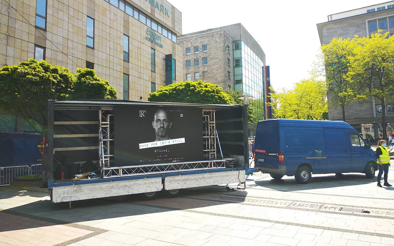 Die Veranstaltungsbranche bei uns in Essen macht mit einer Protestaktion auf dem Kennedyplatz auf sich aufmerksam. Sie wollen Aufmerksamkeit für ihre schwierige Situation erzeugen.