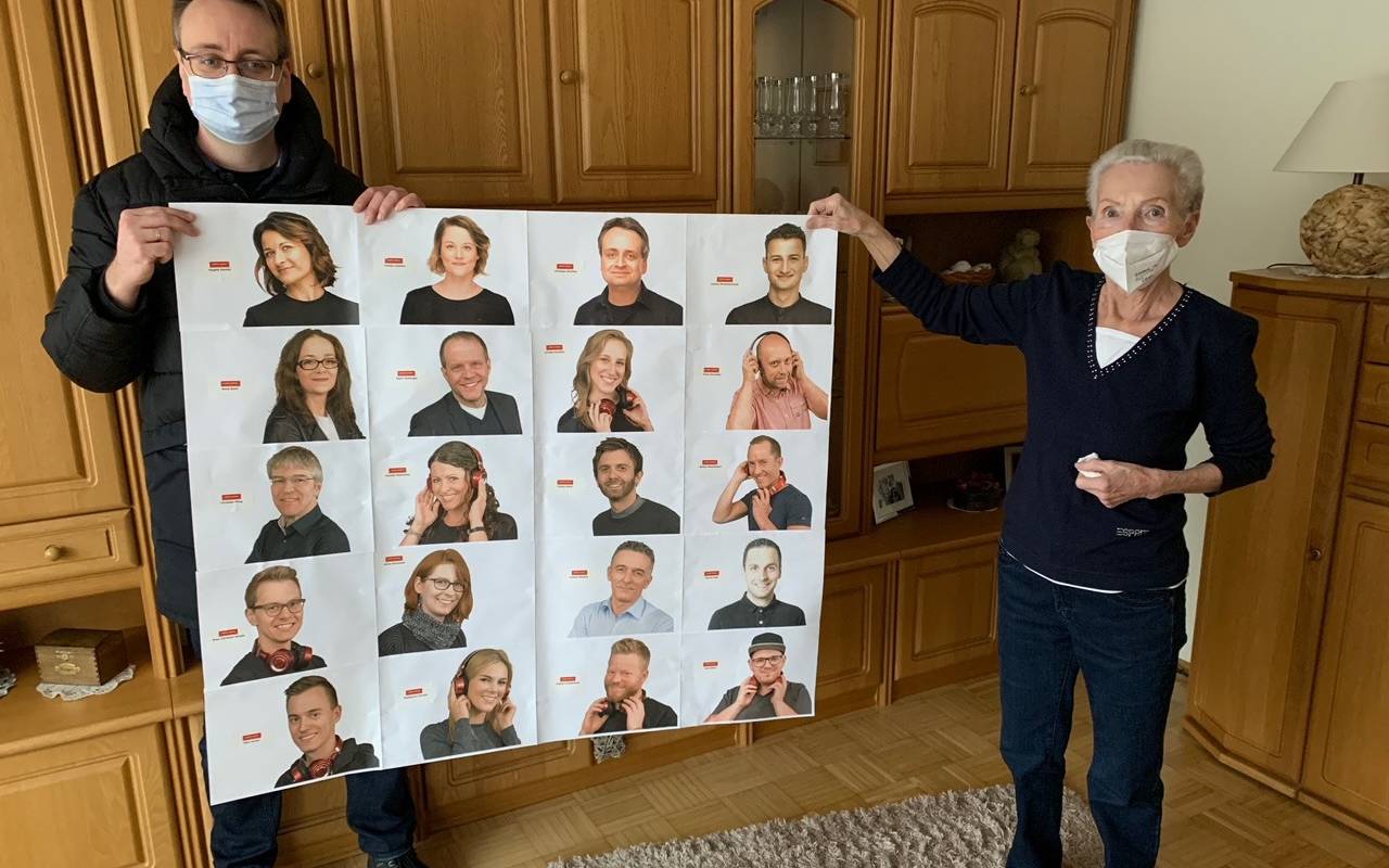 Die Altenessenerin wird am Samstag 81 Jahre alt und hört Radio Essen fast den ganzen Tag. Da haben wir uns etwas einfallen lassen: Eigentlich hat sie ja nur gefragt, ob wir ihr ein paar kleine Bilder zuschicken können. Klein? Zuschicken? Das ist natürlich nichts für uns. Wir haben ein großes Plakat mit den Gesichtern unserer Moderator:innen und Reporter:innen gebastelt und Christian Bannier von der "Radio Essen Frühschicht" hat es ihr persönlich gebracht.