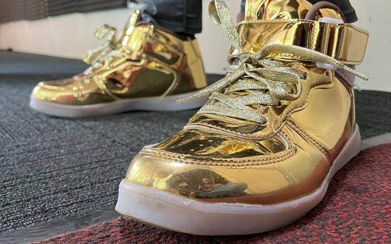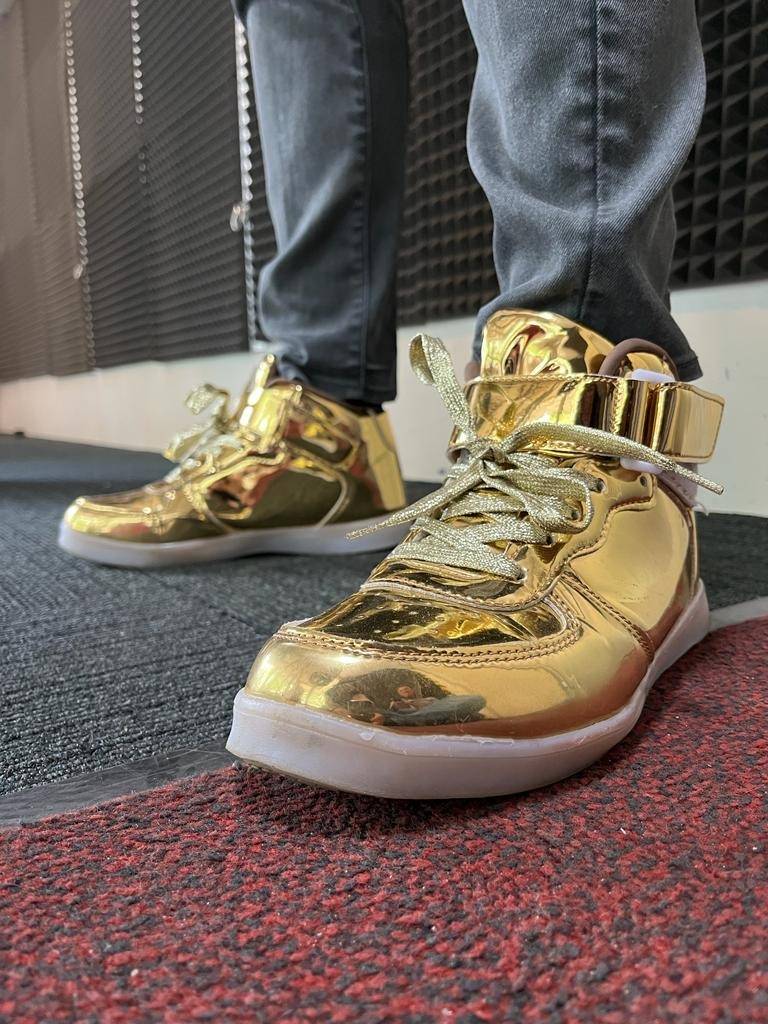 Der Borbecker Schlagersänger Jörg Bausch kam mit glänzenden, goldenen Schuhen zu uns in gläserne Studio. Natürlich wollten die Fans sofort wissen, wo er die denn her hat. Ein Geschenk, hat er im Interview verraten. Auf die Bühne ging er eine dreiviertel Stunde später nicht nur mit goldenen Schuhen, sondern auch noch mit goldenem Jackett.