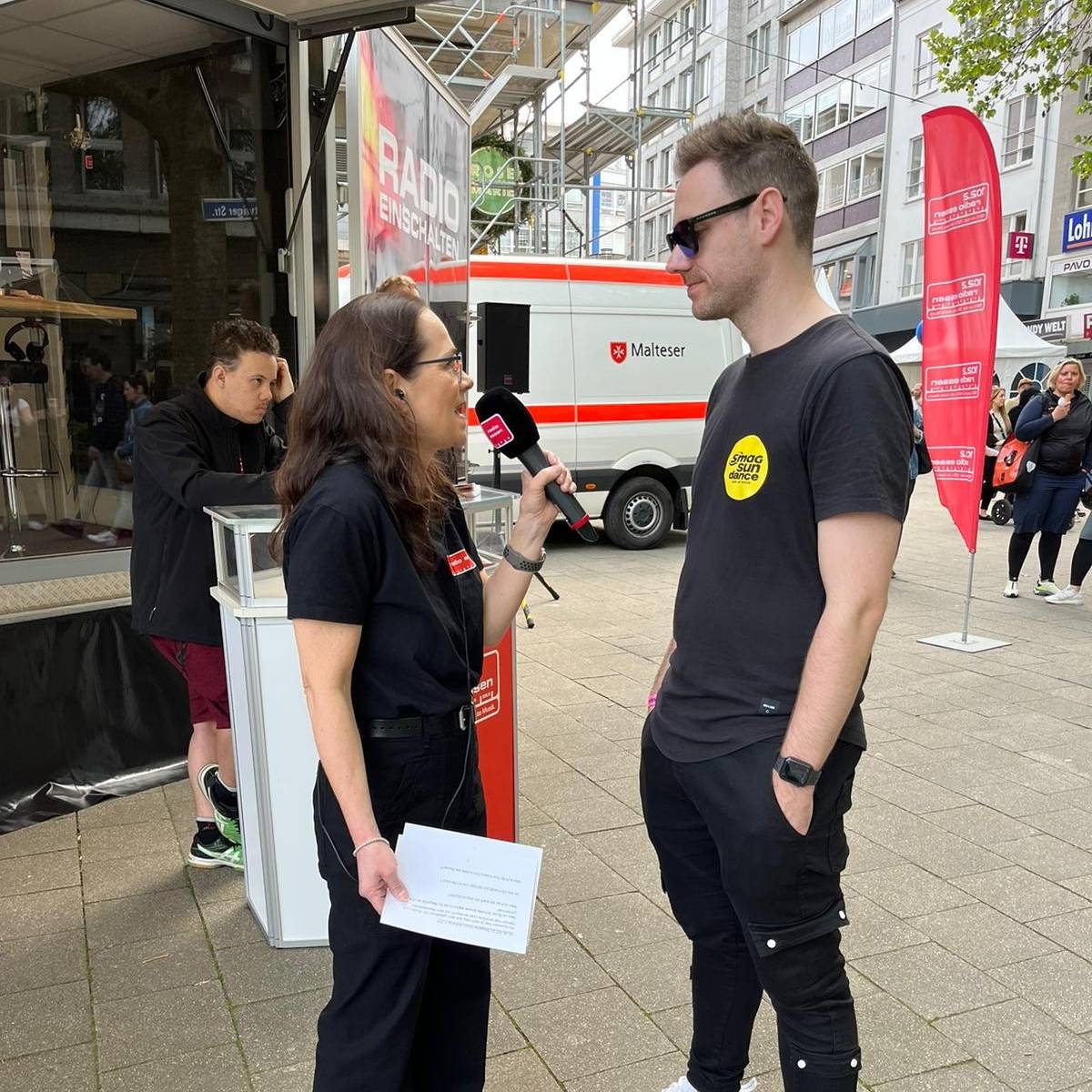 Essen Original hat am Wochenende wieder in die Innenstadt gelockt - und auch Radio Essen ist dem Ruf gefolgt. Und wenn schon zehntausende Menschen auf den Beinen sind und berühmte Musiker wie Joris in Essen sind, wollen wir auch mit ihnen sprechen. Das haben wir im gläsernen Studio auf dem Burgplatz gemacht. Von Musikern über Vereine bis hin zu Künstler war alles dabei.
