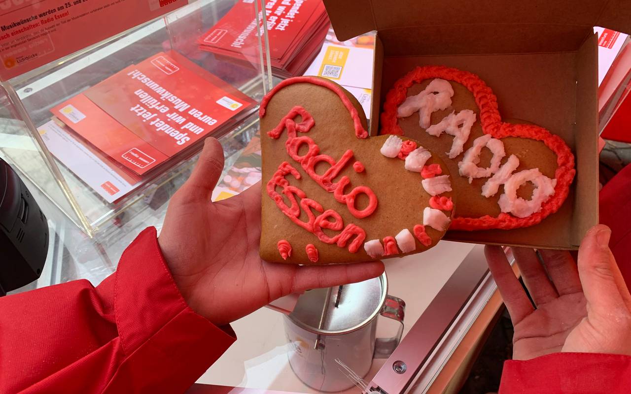 An den vier Sonntagen im Advent besucht Radio Essen die Weihnachtsmärkte in Werden, Haarzopf, Rüttenscheid und Steele. Bei unserer Tour beschriften wir wieder Lebkuchenherzen und sammeln Musikwünsche gegen eine Spende für unsere Aktion Lichtblicke.