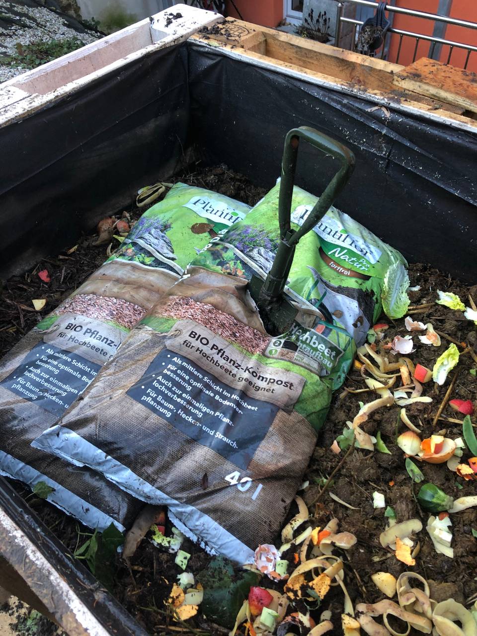 - Schicht: Pferdemist und Kompost (ja, Küchenabfälle!)