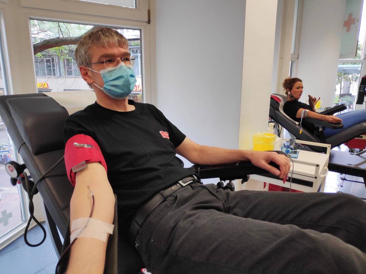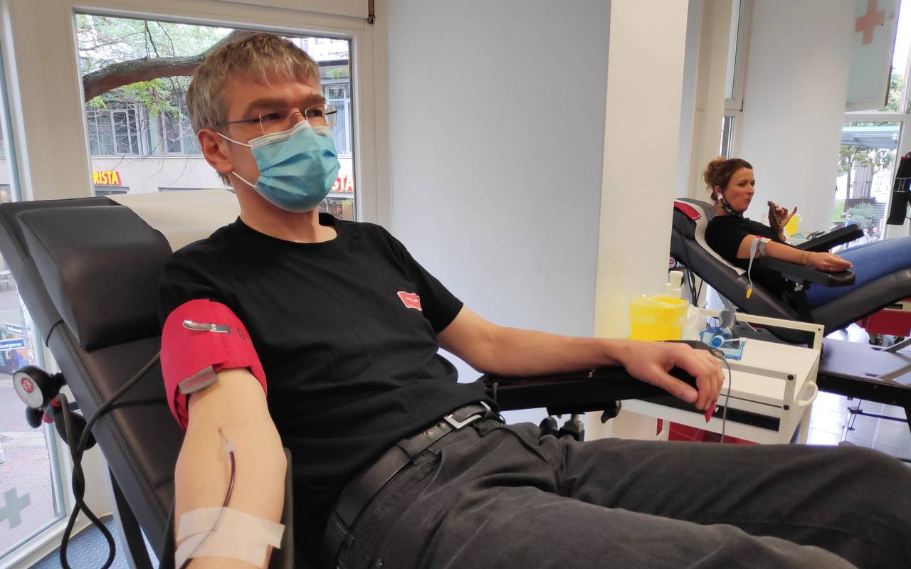 Bei der Blutspende dabei waren auch Radio Essen Chefredakteur Christian Pflug und Kollege Kai Fedrau. Christian Pflug war der einzige Profi, er hat schon öfter Blut gespendet und hat das dementsprechend routiniert über sich ergehen lassen.