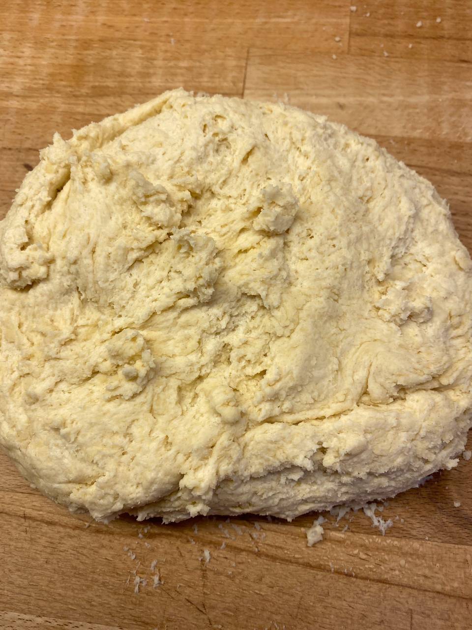 Der Teig ist ein Hefeteig und ihr braucht 350 Gramm Mehl (550 oder evtl. gemischt mit Dinkelmehl), 125 ml warme Milch, 1 Päckchen Trockenhefe, 2 Eier, 80 Gramm weiche Butter, 1 Esslöffel Zucker, einen halben Teelöffel Salz. Die Butter erst ganz am Schluss in den Teig einarbeiten und so funktioniert das.