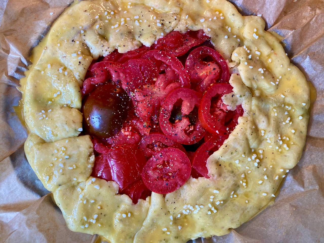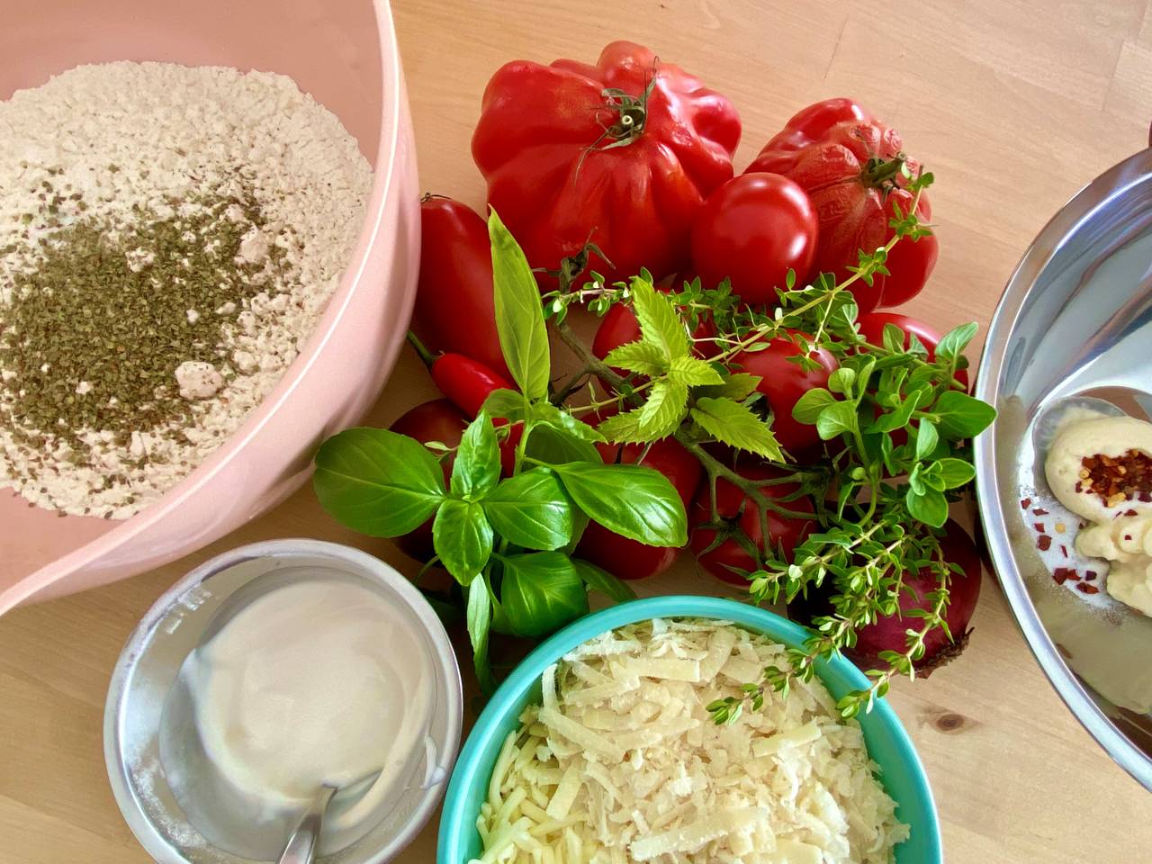 So langsam werden die ersten Tomaten im Garten oder auf dem Balkon reif und später, wenn alle auf einmal reif sind, habt ihr vielleicht ein paar zu viel. Dann macht daraus einfach meinen Tomato Pie oder Tomatenkuchen. Das geht ganz einfach, ein Mürbeteig mit Oregano als Boden und als Füllung etwas Käse, Zwiebeln und natürlich jede Menge Tomaten.