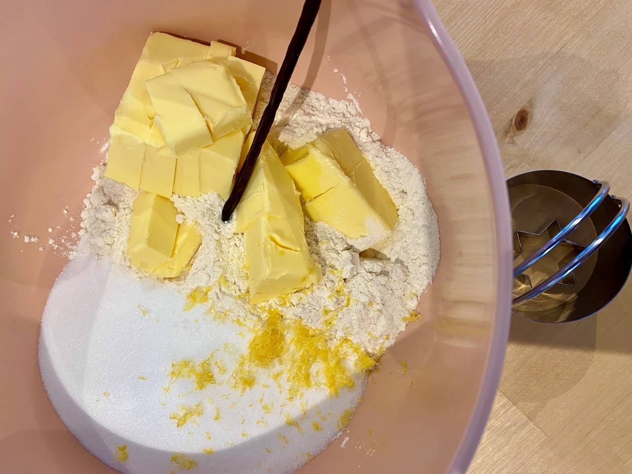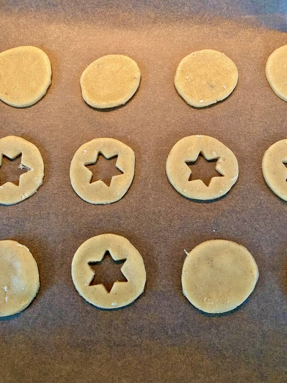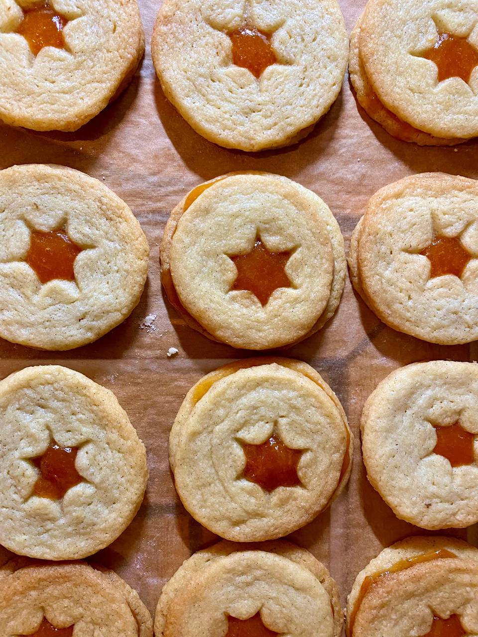 Spitzbuben sind einfache Mürbeteigplätzchen, die aus zwei Teilen bestehen und mit Marmelade zusammen gesetzt werden. Praktisch ist das eine Art Linzer Stern. Wir nehmen traditionell eine Aprikosenmarmelade, weil bei meinen Großeltern ein Aprikosenbaum im Garten stand und aus den Früchten immer im Sommer Marmelade gemacht wurde. Ihr könnt aber auch eure Lieblingssorte verwenden.