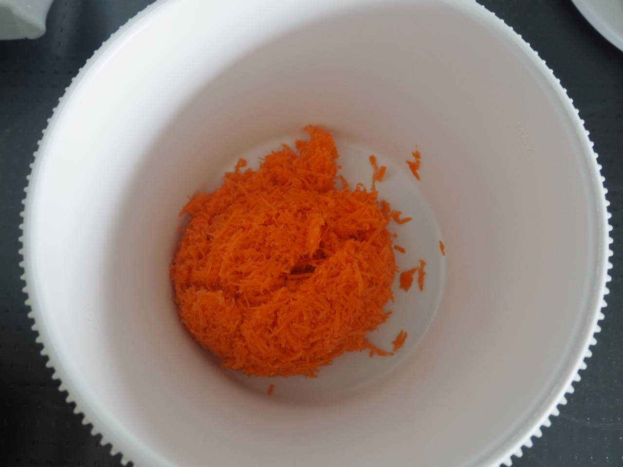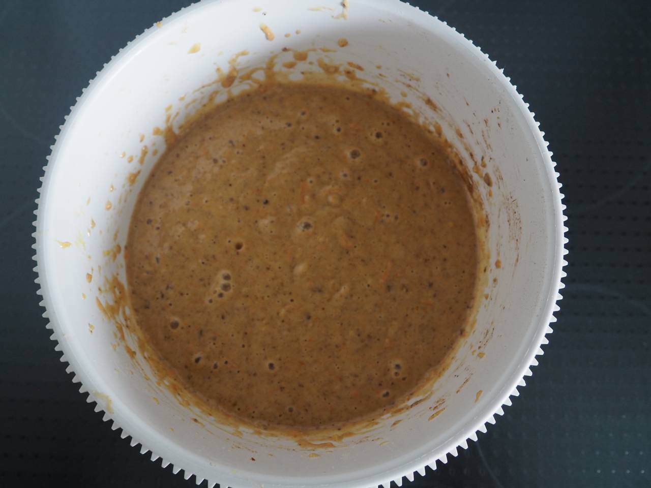 - Schritt 1: Den Ofen auf 180 Grad (Umluft 160 Grad) vorheizen. Jetzt zum Teig: Die geriebenen Karotten mit Mehl, Walnüssen und Backpulver mischen.