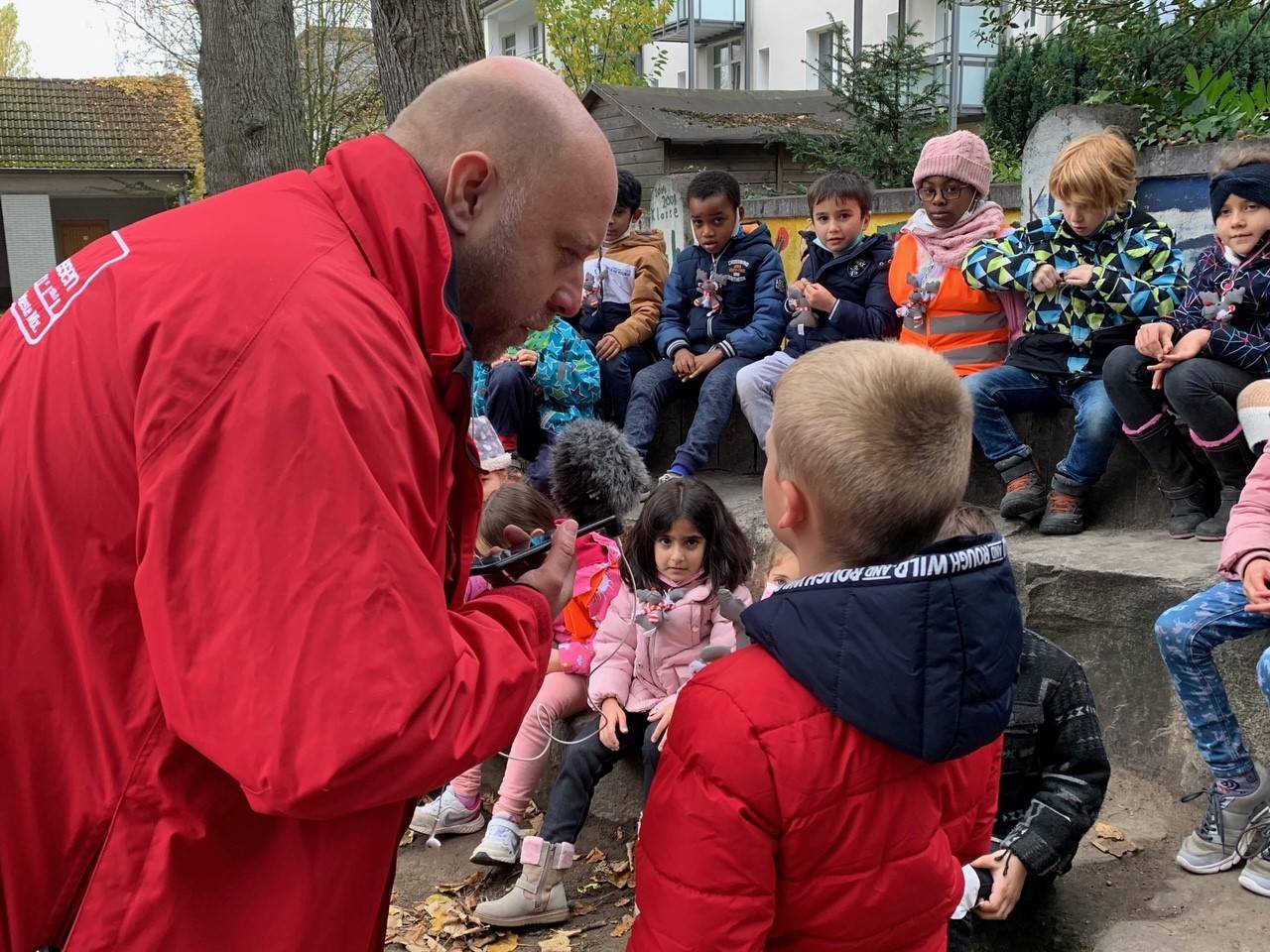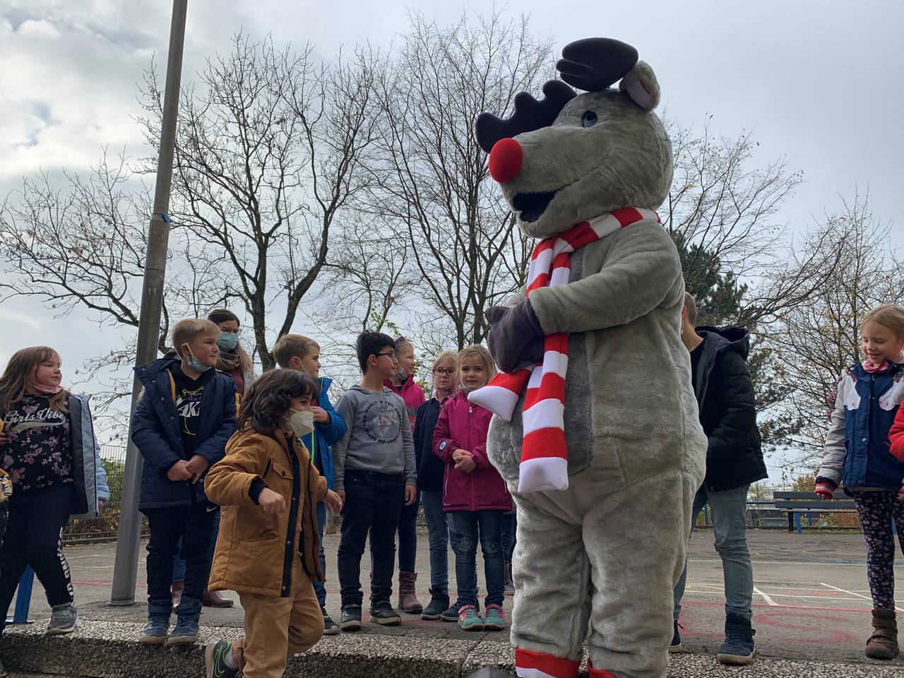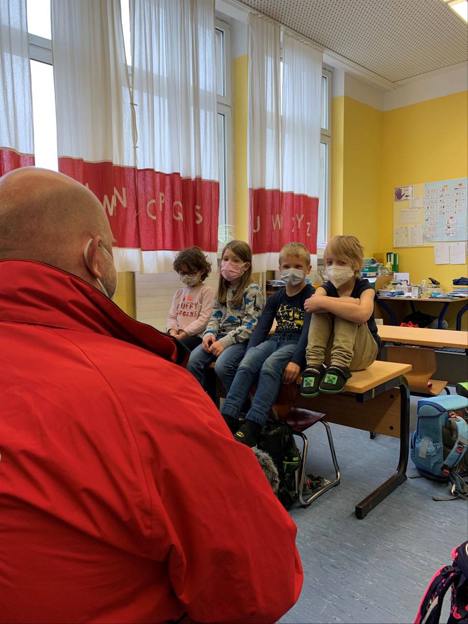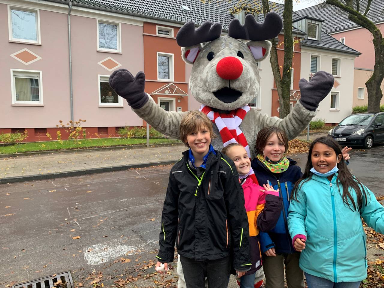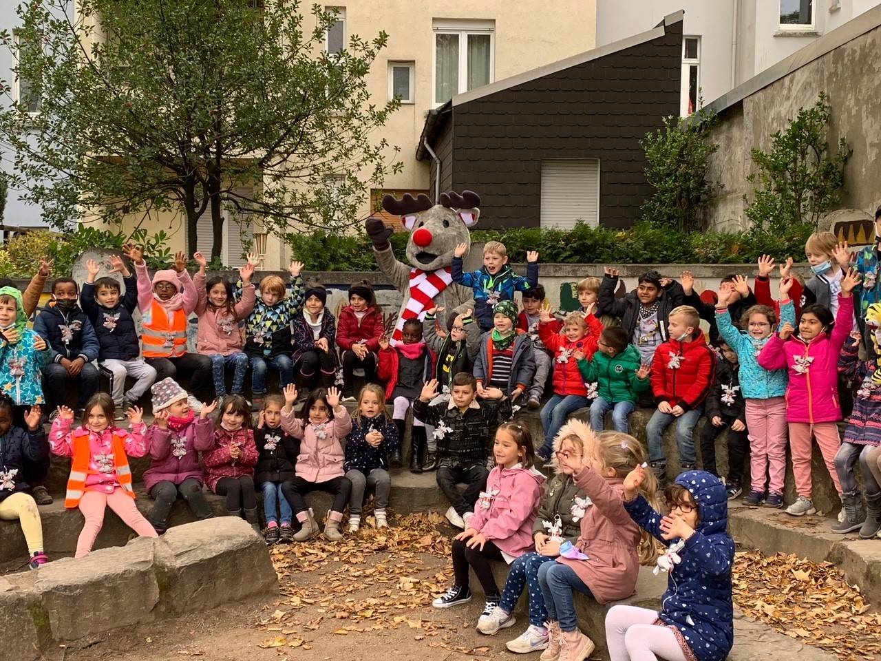 Wir haben vier Essener Grundschulen in diesem Jahr besucht. Zuerst haben wir uns mit der Klasse getroffen und die Kinder waren im Radio zu hören. Am nächsten Tag haben wir uns mit den Erwachsenen, die in Essen etwas zu entscheiden haben, das Problem genauer angeschaut und suchen jetzt nach Lösungen. Außerdem gab es für alle Kinder aus der Klasse den reflektierenden Elch Emil.
