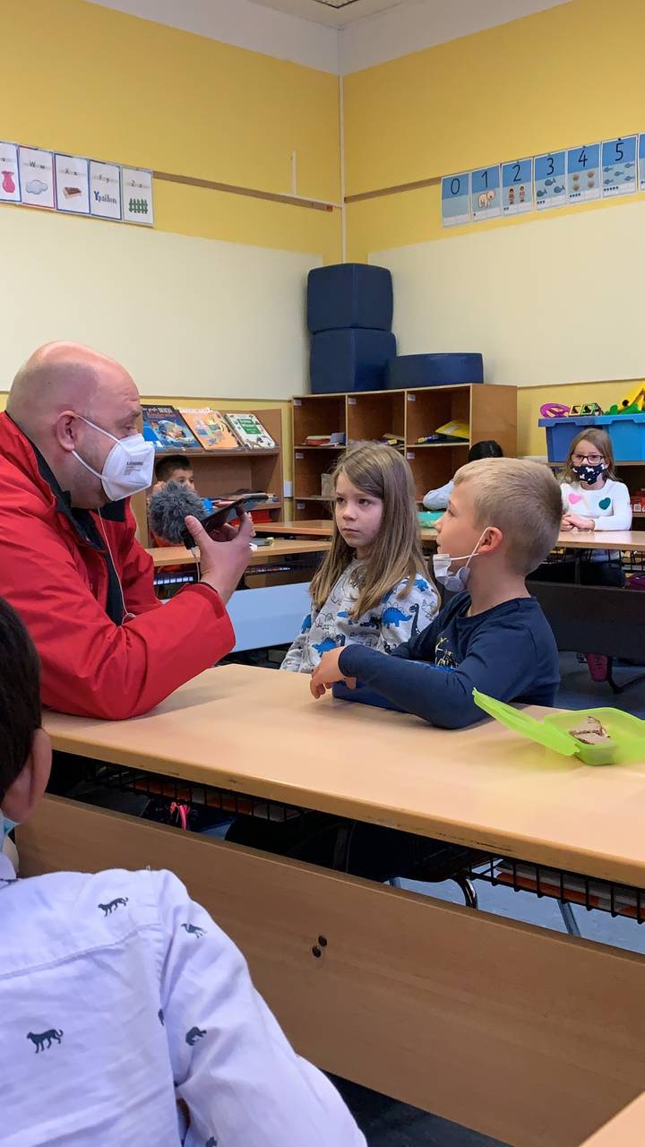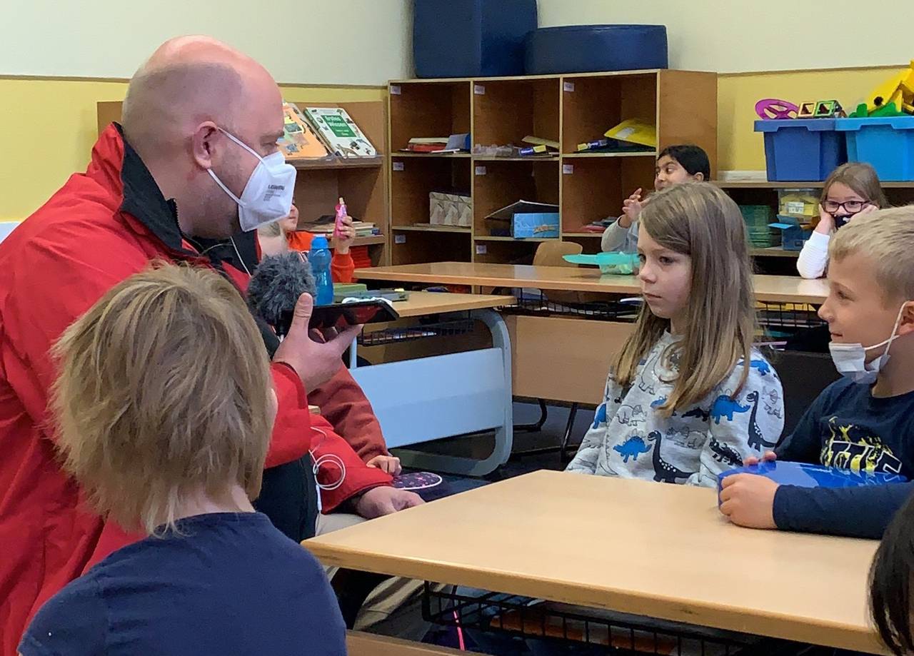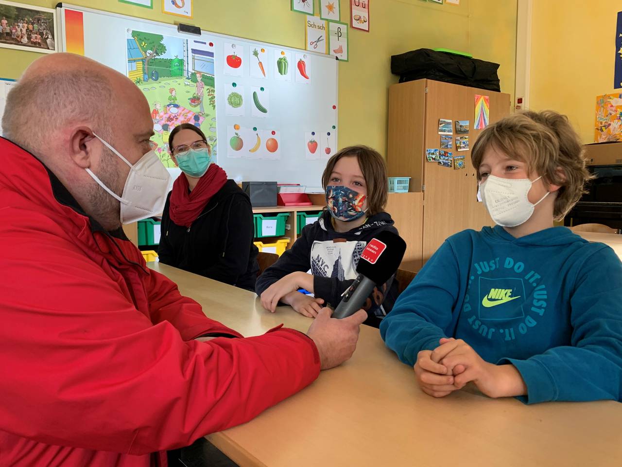 Die letzte Schule war an der Reihe: Die Schülerinnen und Schüler der Klassen 2a und 2c ärgern sich hier über Elterntaxis. Sie blockieren den Weg zur Schule. Die Kinder, die zu Fuß kommen, müssen dann zwischen den Autos über die Straße laufen und es kommt immer wider zu sehr gefährlichen Situationen - besonders in der dunklen Jahreszeit. Jetzt haben die Kinder einen Appell an alle Eltern.