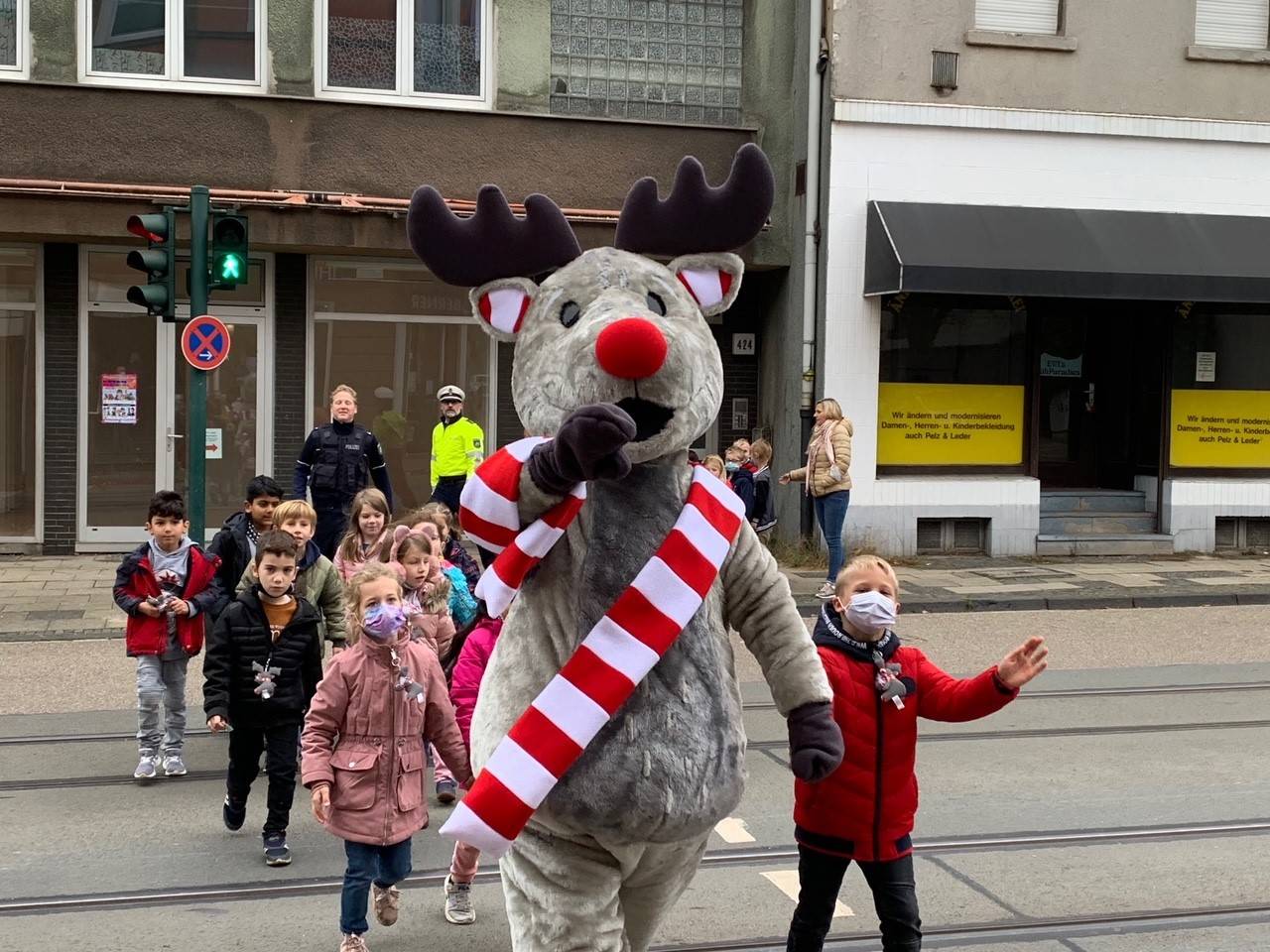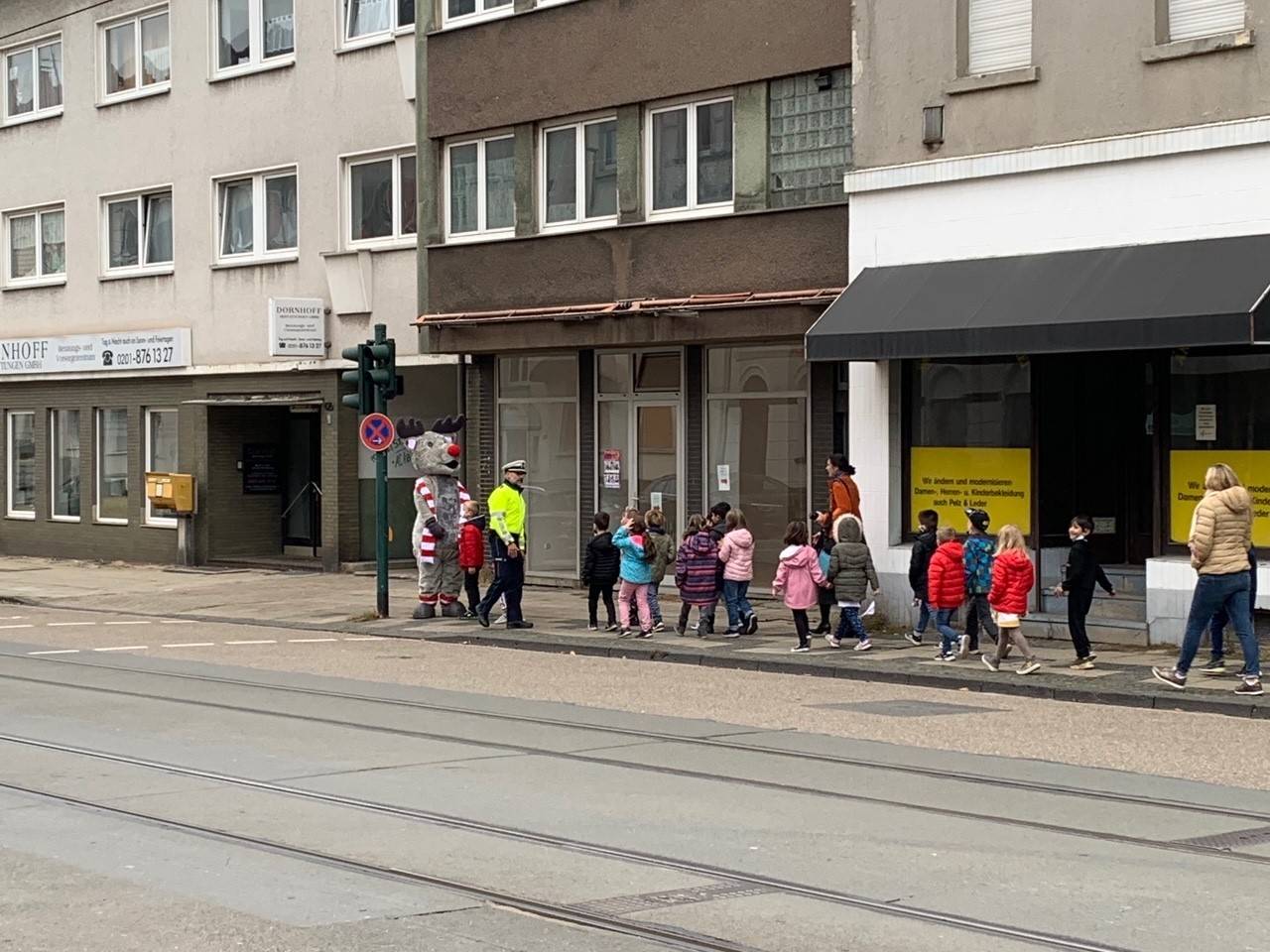 Während der Corona-Pandemie ist der Verkehrsunterricht im Kindergarten und in der Schule in Essen auf der Strecke geblieben. Deswegen haben sich die Kinder der 1a und 1b an der Elisabethschule ein Training mit der Polizei gewünscht. Die Polizisten haben den Kindern erklärt, wie man richtig über eine Kreuzung geht. Radio Essen-Maskottchen Emil war auch dabei!