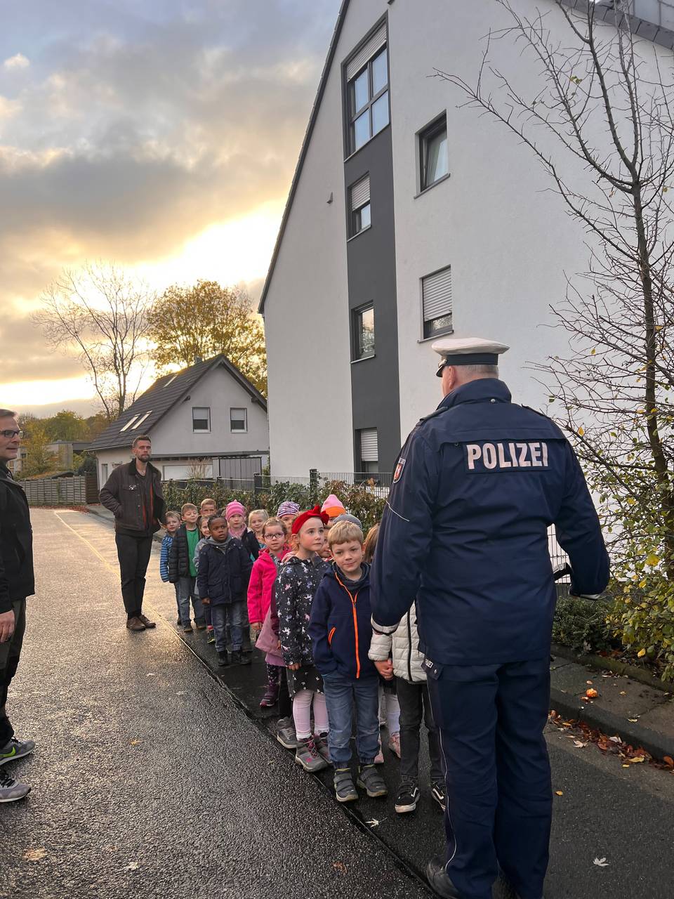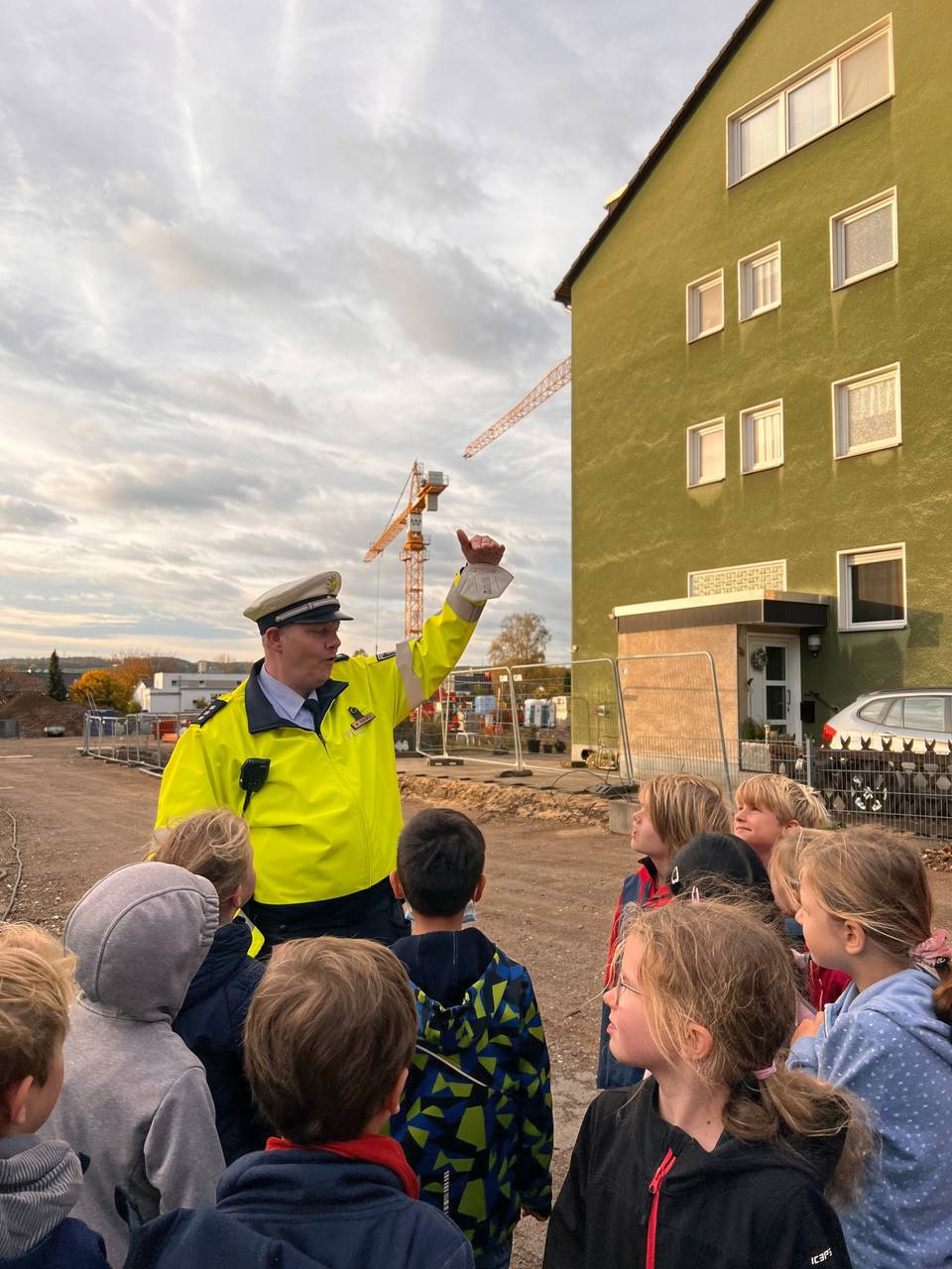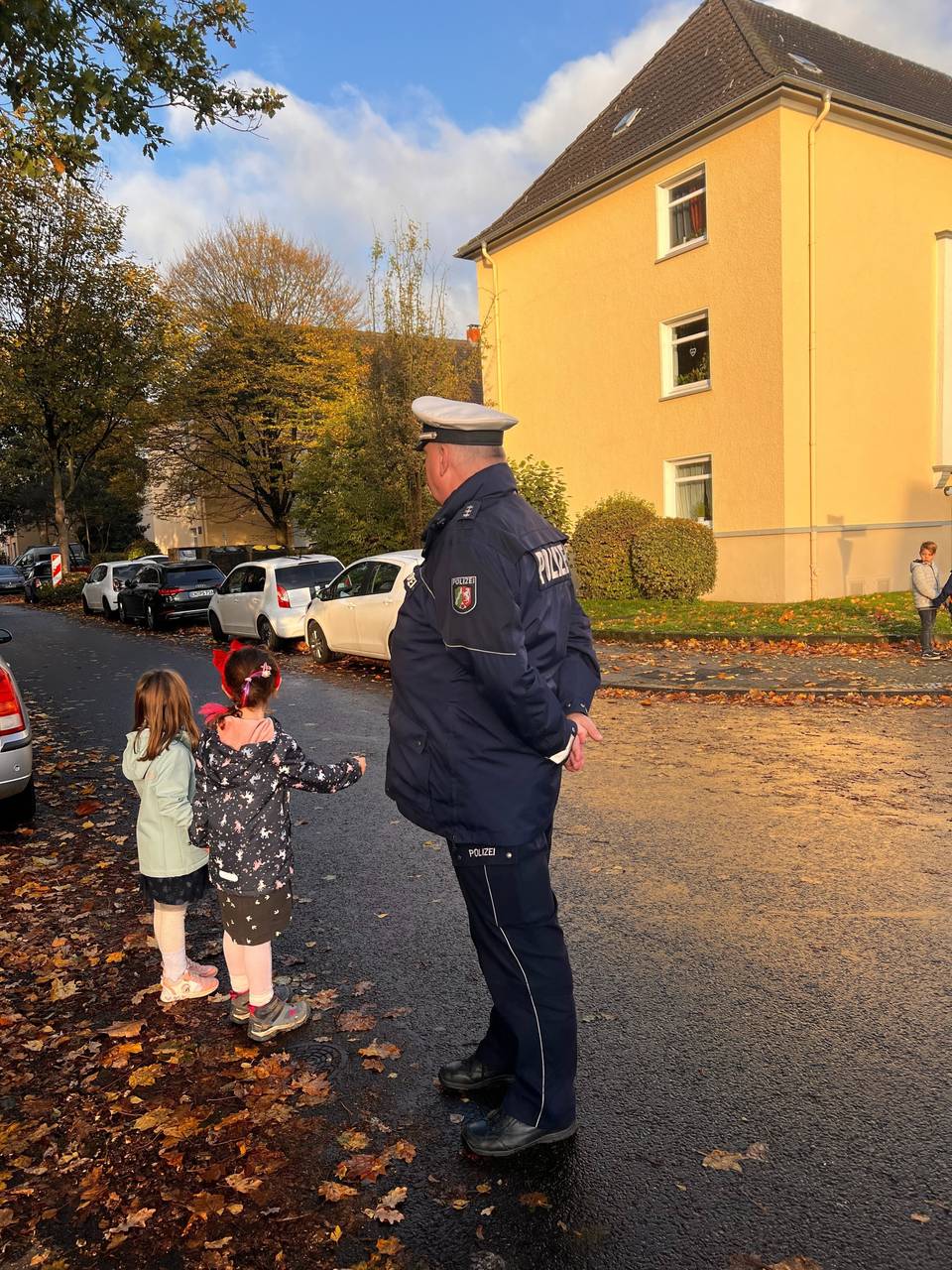 Polizist Markus Robusch von der Polizei Essen hat den Kindern nochmal die Verkehrssituation erklärt: "Besonders wichtig ist es auch an diesem Zebrastreifen wieder genau zu gucken. Oftmals können die LKW-Fahrer die Kinder auf der Straße nicht richtig sehen, weil das Führerhaus so hoch ist", erzählt er.