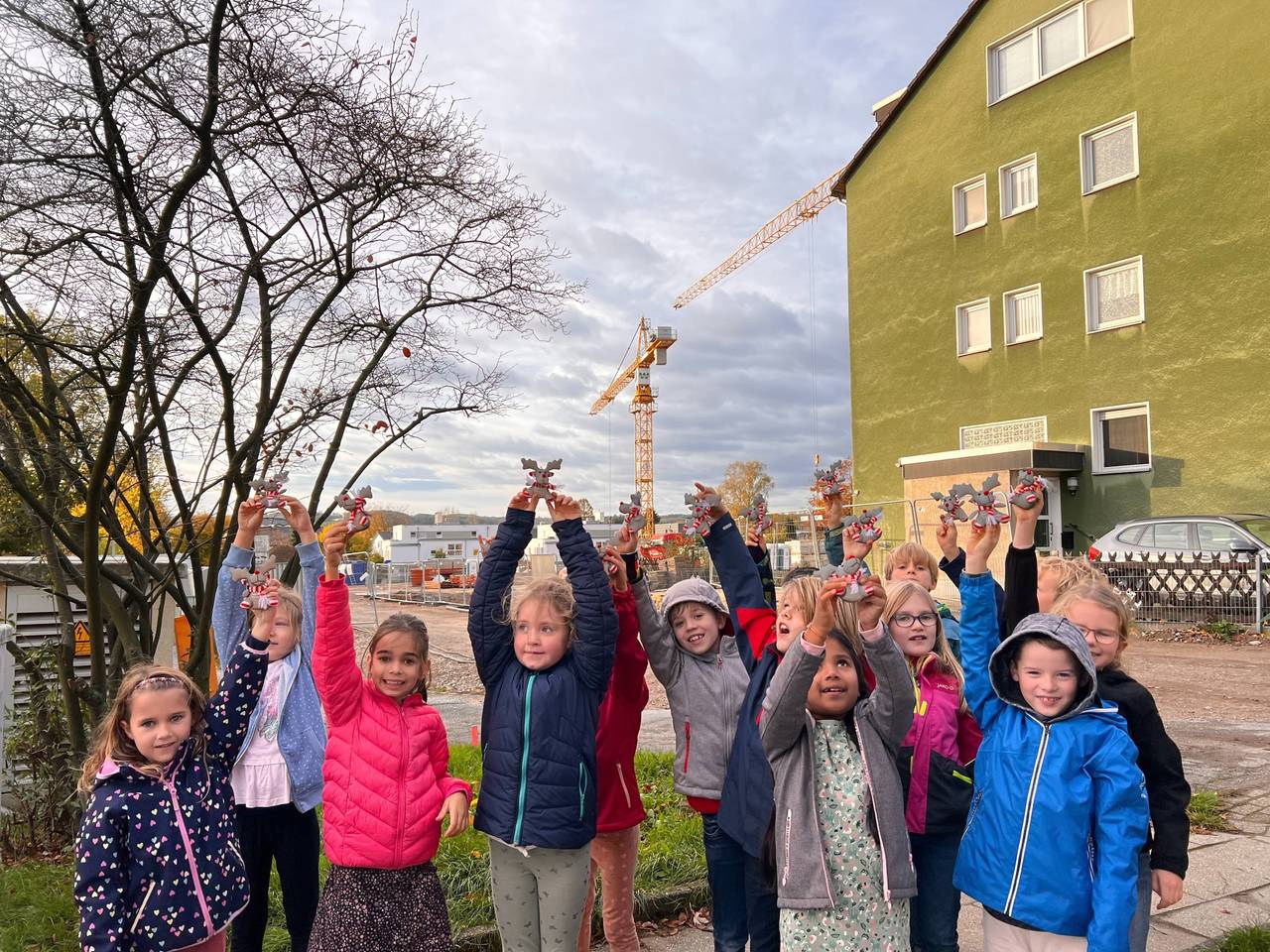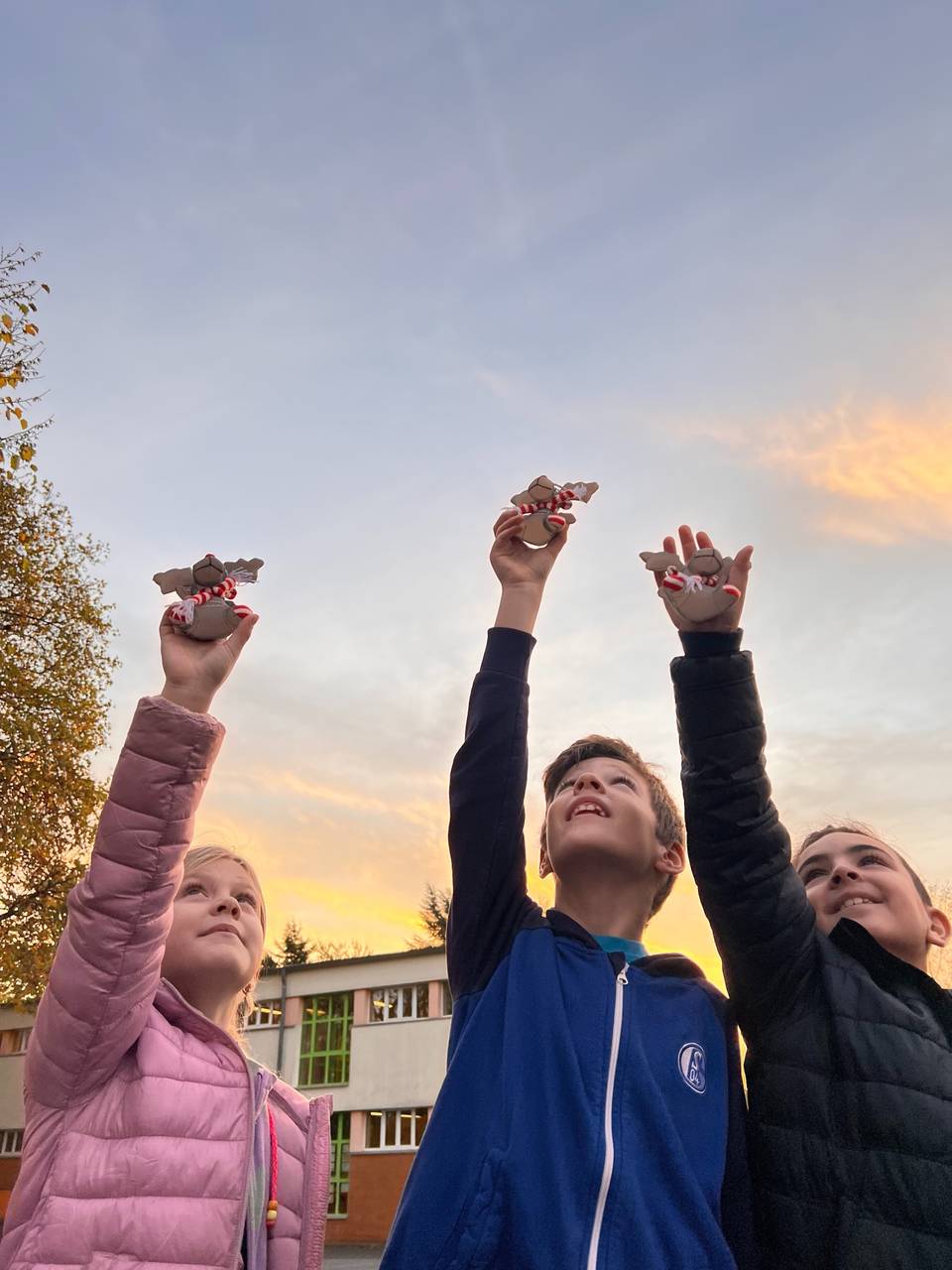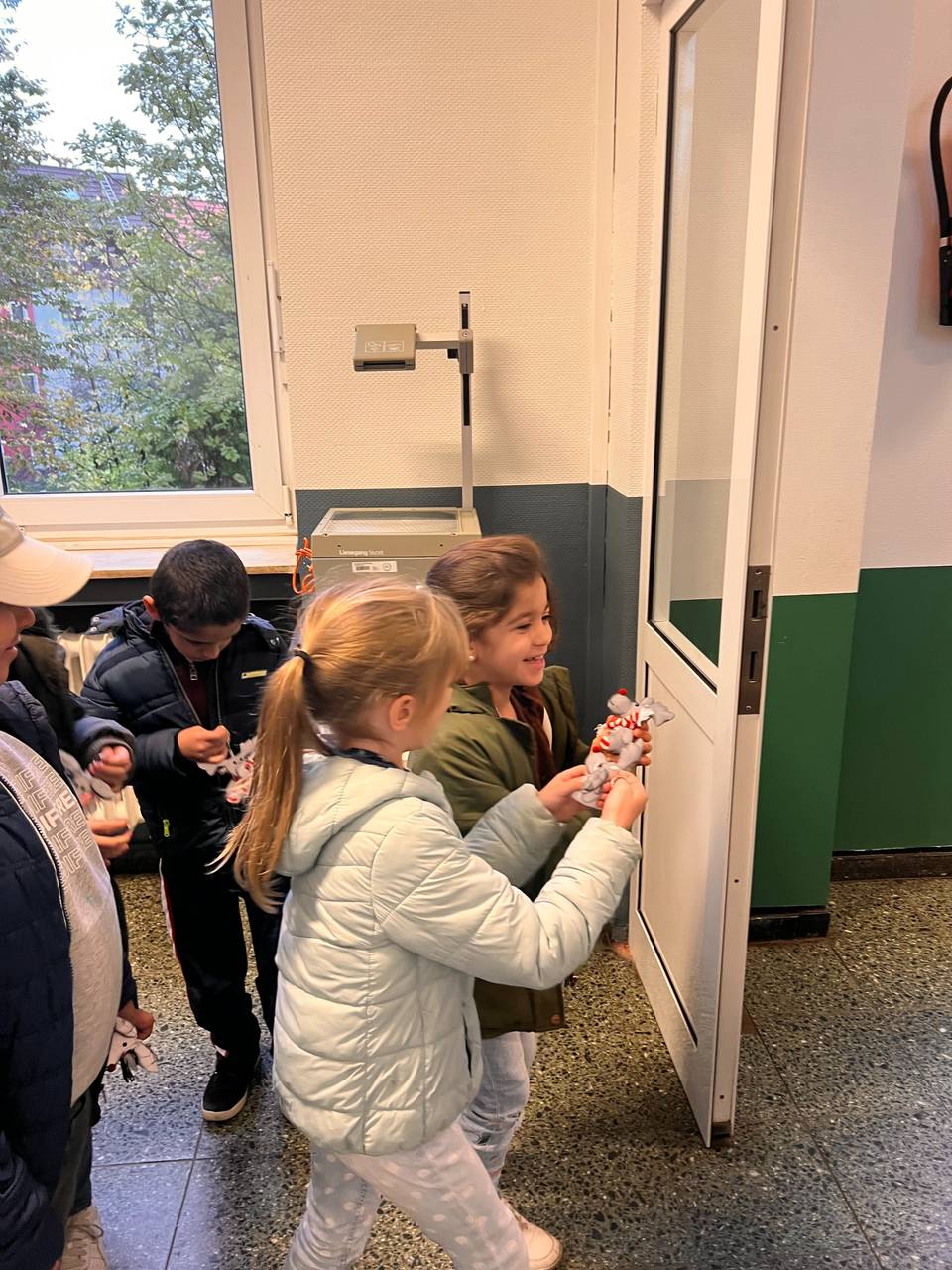 Wir haben uns die Situation an der Ampel angeschaut und dort haben uns die Kinder von ihren Erfahrungen auf dem Schulweg erzählt. Die 7-jährige Helia hat schon öfter Autos über Rot fahren sehen auf ihrem Schulweg. Sophia hat erzählt, dass ihr ein Auto schon fast über die Füße gefahren wäre, als sie gerade über eine grüne Ampel laufen wollte. Gemeinsam mit unserem Elch Emil sind wir dann über die Straße gegangen. Die Polizei hat den Kindern geraten an einer grünen Ampel erstmal stehen zu bleiben und zu schauen, ob die Autos, Lkws und E-Roller auch wirklich stehen bleiben. Nochmal nach links und rechts schauen und dann kann die Straße überquert werden. Am besten soll die Straße gerade überquert werden. Wenn die Ampel beim Überqueren rot wird, dann soll man zügig weiter gehen und nicht umdrehen, sagt die Polizei.