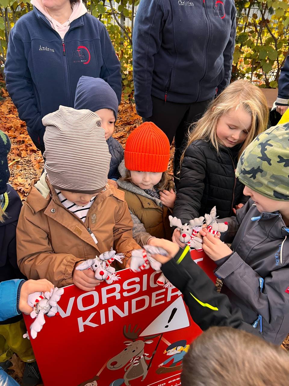 Damit unterwegs nichts passiert und alle Kinder auch sicher am Ziel ankommen, gibt es ein besondere Regel. Wenn die Kinder das Wort "Ameisen-Kommando" hören, dann müssen sich alle hintereinander in eine Reihe stellen. Die Kinder selbst wissen auch ganz genau, warum das wichtig ist, denn sie haben selbst schon viele gefährliche Situationen auf der Straße vor der KiTa erlebt. Der 5-jährige Ben aus der Fuchsbaugruppe erzählt von einem großen, weißen Lastwagen, der über den Bürgersteig an den Kindern vorbei gefahren ist und dabei den Bollerwagen der Gruppe gestreift hat. Jakof hat schon ganz oft beobachtet, wie viele Autos zu schnell durch die Straße gefahren sind. Die Kinder kennen die Verkehrsregeln und Tipps der Polizei. Bevor sie über die Straße gehen schauen sie erst links, dann rechts und wieder links und gehen dann zügig über die Straße.