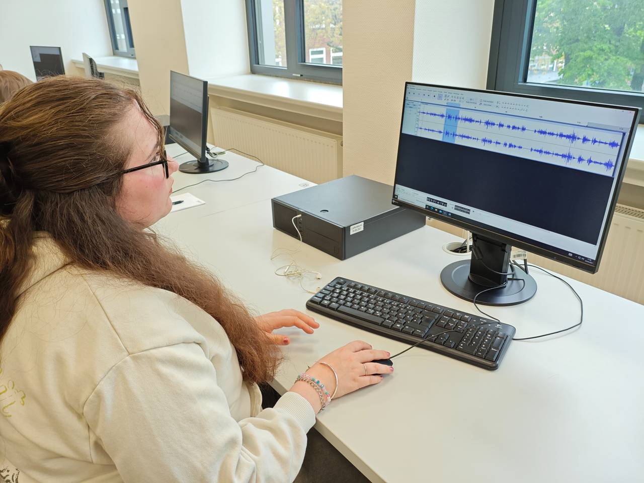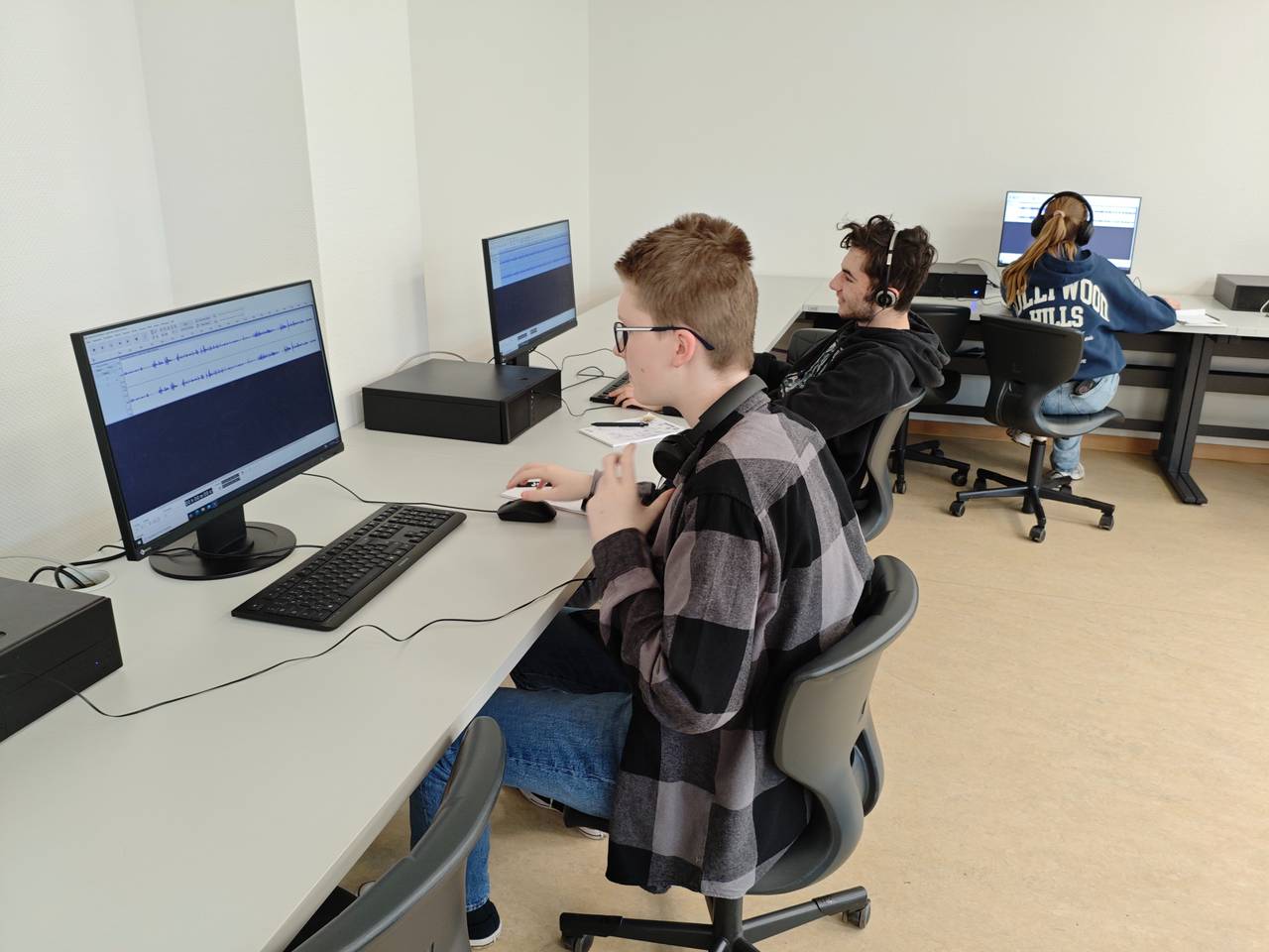 Der dritte Tag im Radiocamp war der Computertag: Den ganzen Tag haben die Radiocamperinnen und Radiocamper mit Schneiden und Schreiben verbracht. Zuerst der Schnitt: In einem Programm für Audioschnitt wurden alle gesammelten Umfragetöne genau gehört und bearbeitet. Welche Ausschnitte dürfen in die Sendung? Welche nicht? Und wie schreibt man eigentlich eine Anmoderation für die Töne? Das war Part 2. Am Schluss hatten alle einen ersten Entwurf für ihren Text und die Töne. Dann ging es an die Reihenfolge. Über welches Thema reden wir zuerst? Glücksbringer? Glück und Drogen? Glück und Geld? Seid gespannt, das Ergebnis gibt es am Sonntag bei Radio Essen.