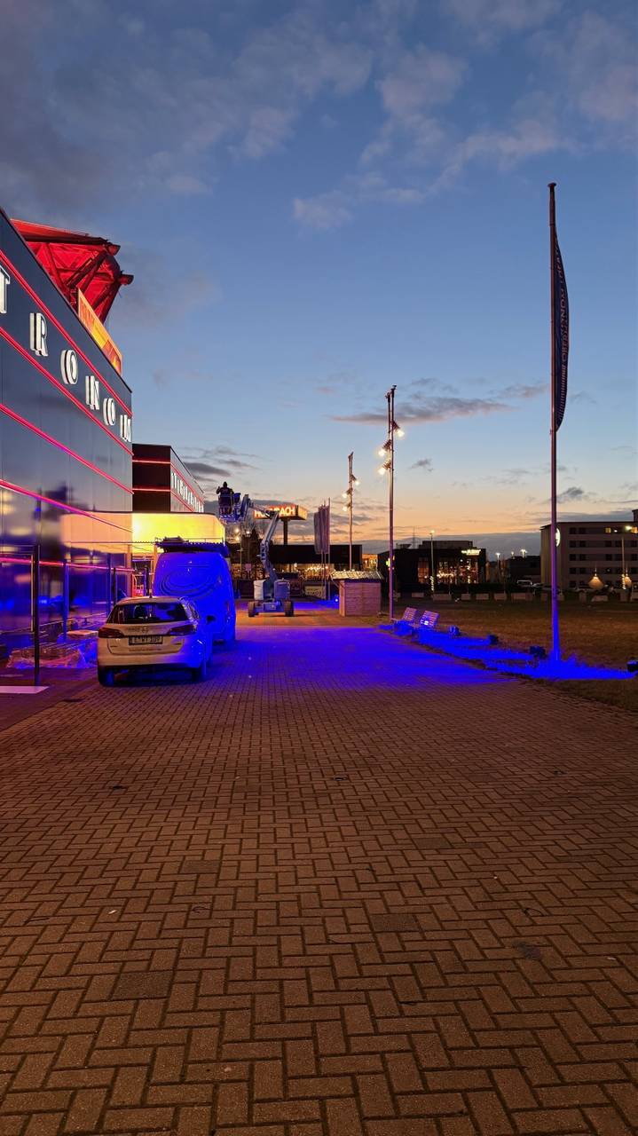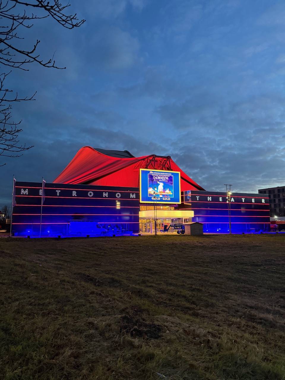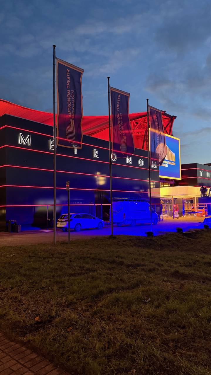 Die Lösung des Rätsels: Die bunten Lichter am Himmel stammen vom Metronom Theater in Oberhausen. Nach einer langen Pause von viereinhalb Jahren öffnet das Theater am Freitag (29. November) endlich wieder seine Türen. Geplant sind Musicals und Shows, die regelmäßig wechseln sollen. Am Tag der Wiedereröffnung feiert das erste Musical direkt seine große Premiere: Der Geist der Weihnacht.