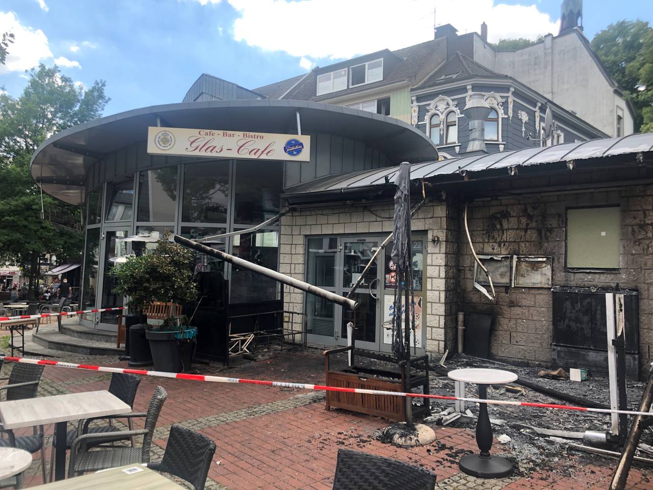 Am Einsatzort angekommen haben die Feuerwehrleute einen Brand beim "Glas-Café" festgestellt. Da haben Stühle in einem Windfang unmittelbar vor dem Gebäude gebrannt. Die Flammen haben gedroht, auf das Gebäude überzugreifen. Das konnten die Einsatzkräfte durch das schnelle Eingreifen aber verhindern. Nicht verhindert werden konnte, dass die Fassade und Teile des Daches beschädigt wurden. Auch Brandrauch war in das Gebäude eingedrungen. Das wurde anschließend mit einem Lüfter herausgepustet. Wie es zu dem Brand gekommen ist, ist noch unklar. Um das zu ermitteln, hat die Polizei schon während der Löscharbeiten die Ermittlungen aufgenommen.