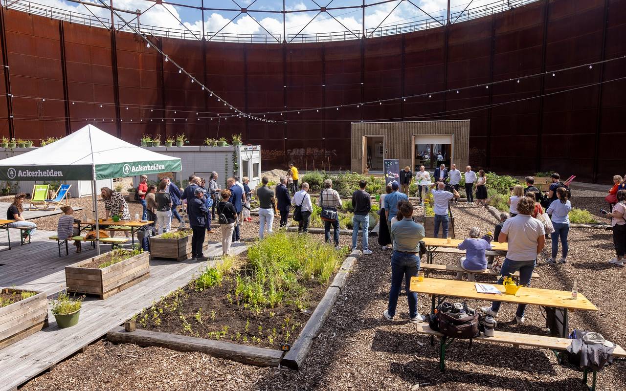 In Essen steht jetzt zum zweiten Mal ein Modulhaus und zeigt die Möglichkeiten für modernes Bauen. Schon im letzten Jahr war das Haus auf dem Berliner Platz zu sehen und zu begehen. Damals war es Teil der Jubiläumsausstellung "100 Jahre Museum Folkwang". Das Besondere vor einem Jahr war, dass das Haus mitten im Kreisverkehr auf dem Berliner Platz stand. Die Stadt Essen hatte sogar extra eine Fußgängerampel aufgebaut, damit alle das Haus erreichen konnten. Jetzt steht es mitten im Grünen auf Zollverein, am ehemaligen Gasometer. Dort haben inzwischen die Ackerhelden einen Garten angelegt und unterrichten im grünen Klassenzimmer. Die Ackerhelden werden das Modulhaus mit nutzen.