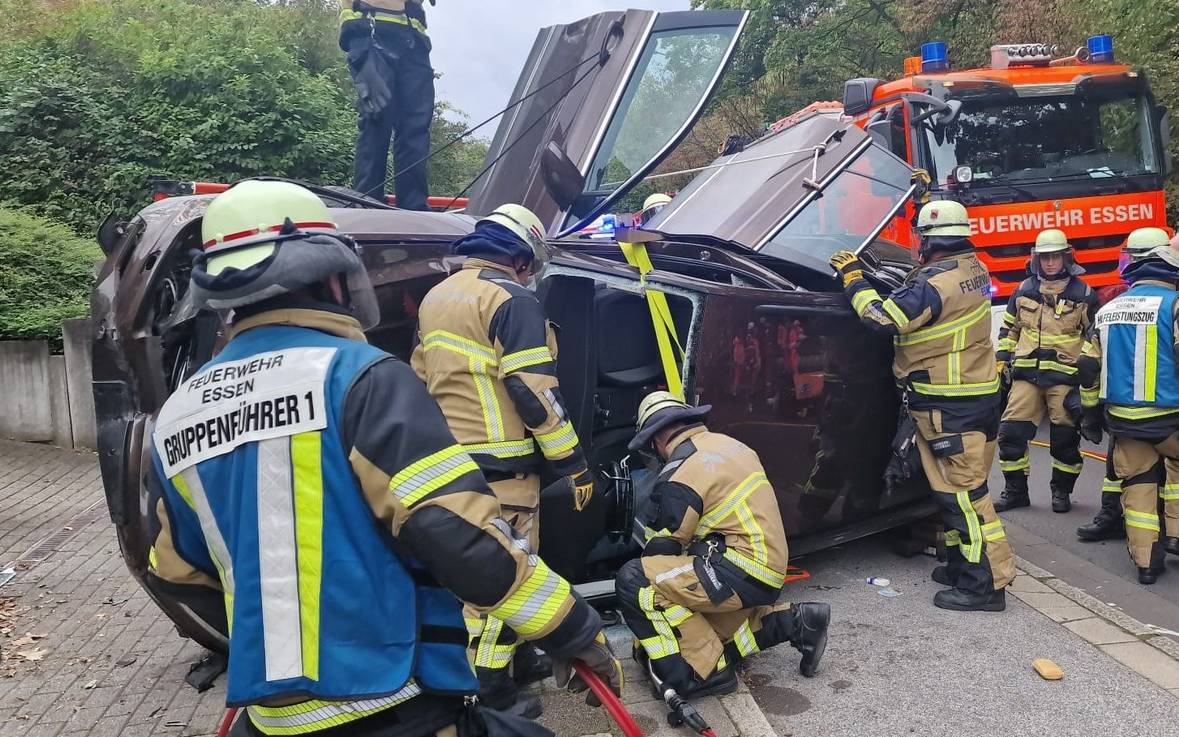 Am Donnerstag-Nachmittag (05.10.) wurde die Feuerwehr Essen zur Ruhrallee in Bergerhausen zu einem schweren Verkehrsunfall gerufen. Ein 73-jähriger SUV-Fahrer hatte die Kontrolle über sein Auto verloren. So kam er von der Fahrbahn ab. Nach einer Irrfahrt über den Bürgersteig kippte schließlich das Auto um. Durch den Unfall war der Rentner in seinem Fahrzeug eingeschlossen. Als die Einsatzkräfte eintrafen, wurde zuerst das Fahrzeug abgesichert, damit es sich nicht weiter bewegen konnte. Mit schweren Einsatzgeräten hat die Feuerwehr Essen das Dach des Autos abgetrennt. So konnte der Rentner aus dem Auto befreit werden. Die Ruhrallee in Bergerhausen war in Richtung Kupferdreh komplett gesperrt. Anschließend wurde der Fahrer vom Rettungsdienst versorgt und vom Notarzt in ein Krankenhaus gebracht. Die Feuerwehr Essen war mit einem Hilfeleistungszug, einem Löschzug und dem Rettungsdienst für rund 1,5 Stunden im Einsatz, die Ruhrallee war in Richtung Kupferdreh gesperrt. Wieso der Unfall passierte, konnte bislang noch nicht geklärt werden. Die Polizei Essen hat die Ermittlungen aufgenommen.
