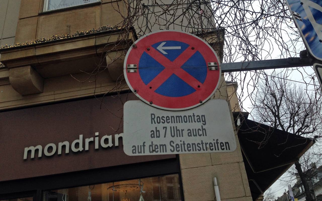 Rosenmontag in Essen - Halteverbotsschilder stehen