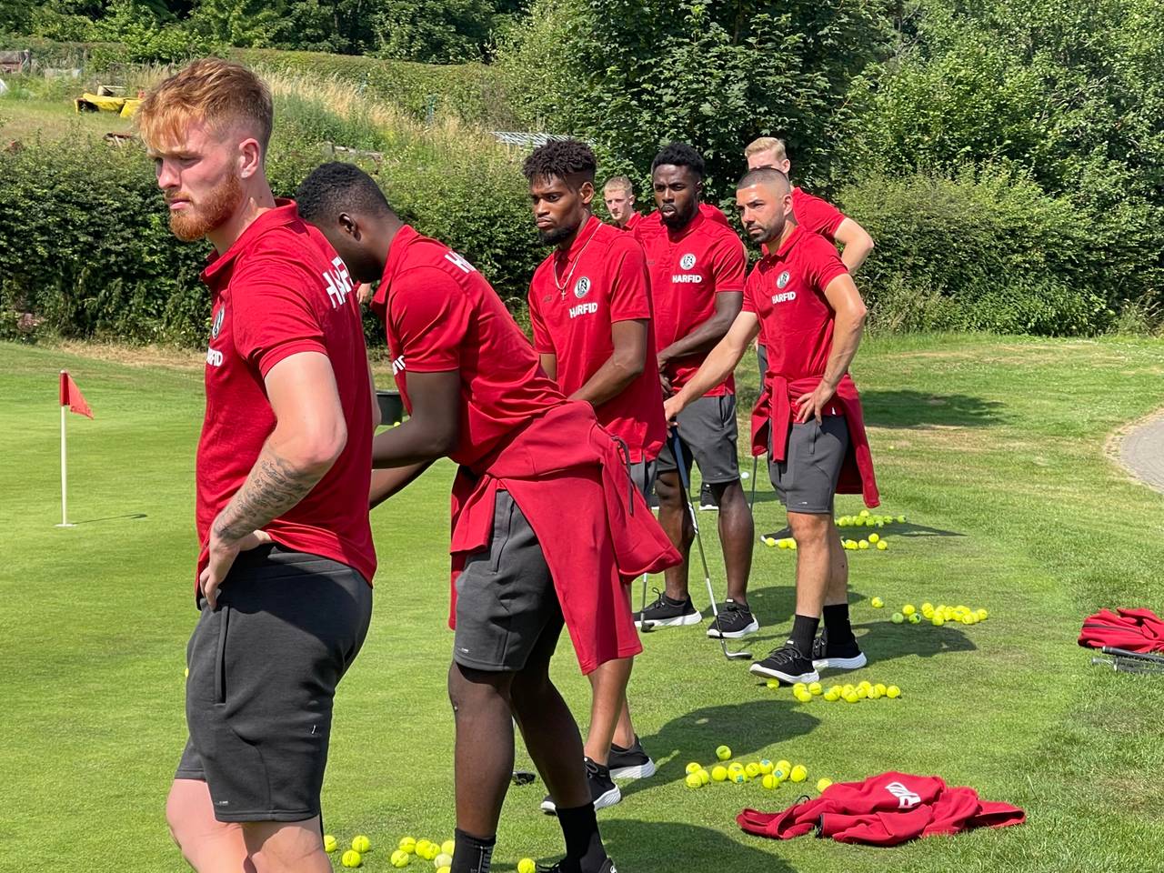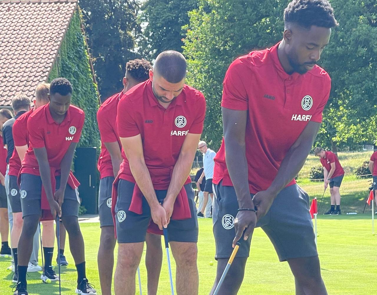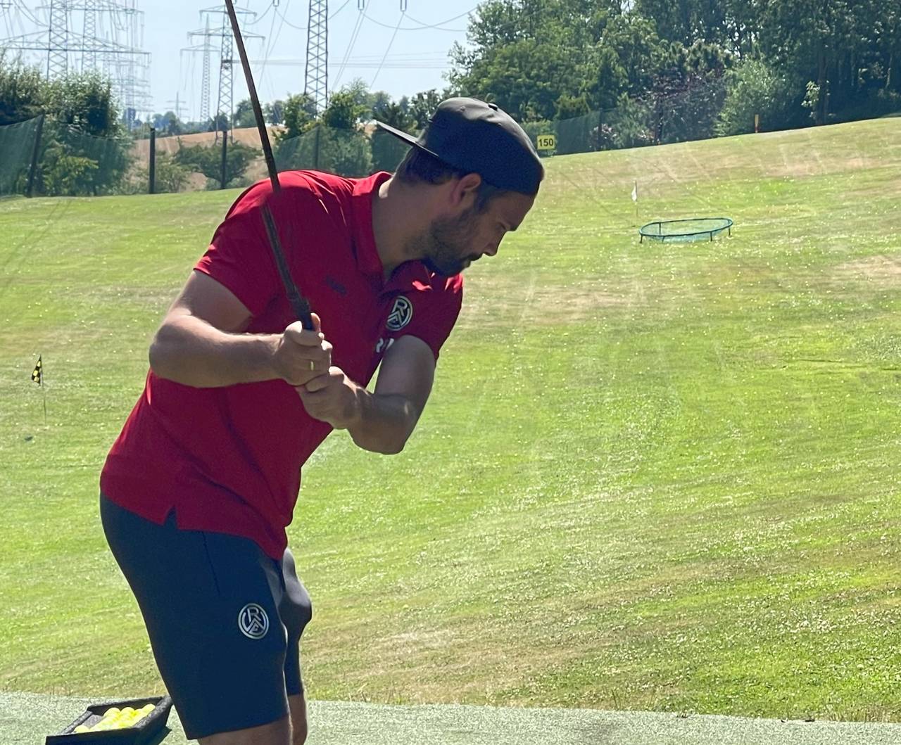 Nach einer kurzen Begrüßung durch den Vorstand, welcher sich nochmals bei der Mannschaft bedankte, ging es in Zehnergruppen abwechselnd auf die Drivingrange und ans putten. Nach einer kurzen Anleitung durften die Fußballer selbst den Schläger schwingen und bei einigen waren auch schon schnell ein paar Fortschritte zu erkennen. Besonders RWE-Torhüter Raphael Koczor wollte den Schläger gar nicht mehr aus der Hand legen. Die Spieler mit etwas weniger Talent im golfen genossen wenigstens das gute Wetter, den Spaß mit den Teamkollegen und die schöne Abwechslung in der anstrengenden Saisonvorbereitung.