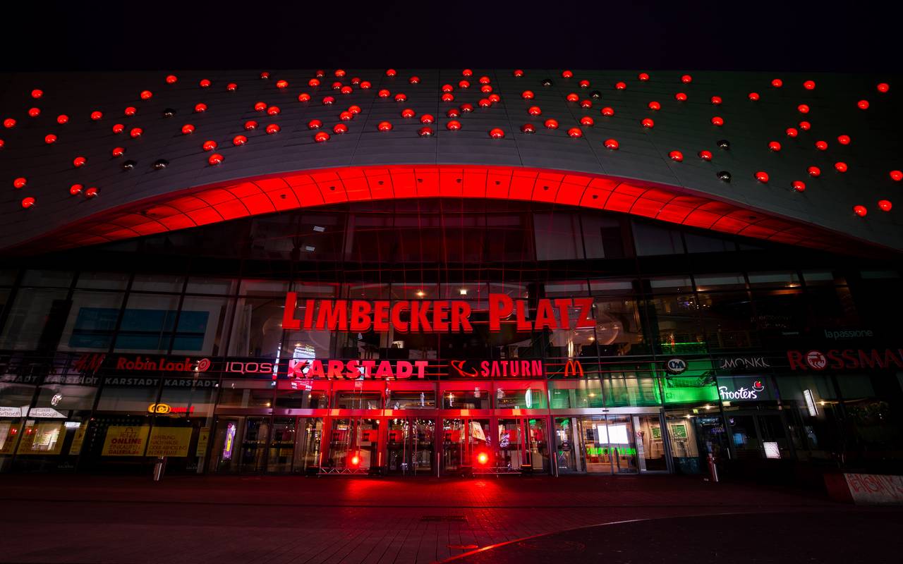 In Rot leuchten heute Abend das Einkaufszentrum Limbecker Platz und das Alleecenter in Altenessen, dazu die Filialen der Schuhkette Deichmann in der Innenstadt und in Rüttenscheid. Die Einzelhändler fordern von der Bundesregierung und den Ministerpräsidenten, dass sie ab dem 8. März wieder öffnen dürfen. Dafür starten sie diese Aktion heute Abend (01. März) und beleuchten die Geschäfte in Rot. Die Ministerpräsidenten und die Bundeskanzlerin beraten am Mittwoch über die neuen Regeln in der Corona-Pandemie. Sie haben dafür die Initiative "Leben im Zentrum" gegründet. Hier kann jeder die Geschäfte unterstützen.