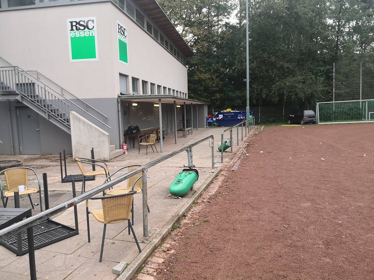 Klaus Meißner war geschockt. Der Vorsitzende des Rüttenscheider SC saß am Sonntagmorgen am Frühstückstisch, als er Fotos von der Sportanlage im Walpurgistal geschickt bekam. Darauf zu sehen: Stühle, die quer auf dem Sportplatz verteilt waren, zertretene Mülltonnen, und Scherben so weit das Auge reicht. Im Vereinsheim sah es ebenfalls schlimm aus, denn dort standen nicht nur Dutzende leere Alkoholflaschen herum, sondern auch Scheiben waren eingeschlagen und eine Garderobe abgerissen.