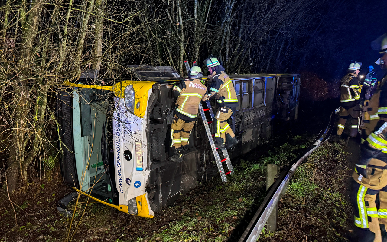 Am Montagabend (16.12.) ist ein Linienbus der Firma Mesenhohl in Essen über eine Leitplanke gekippt. Zunächst war unklar, wie viele Personen betroffen waren.