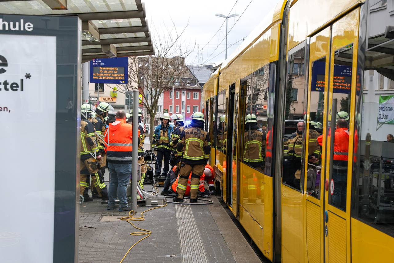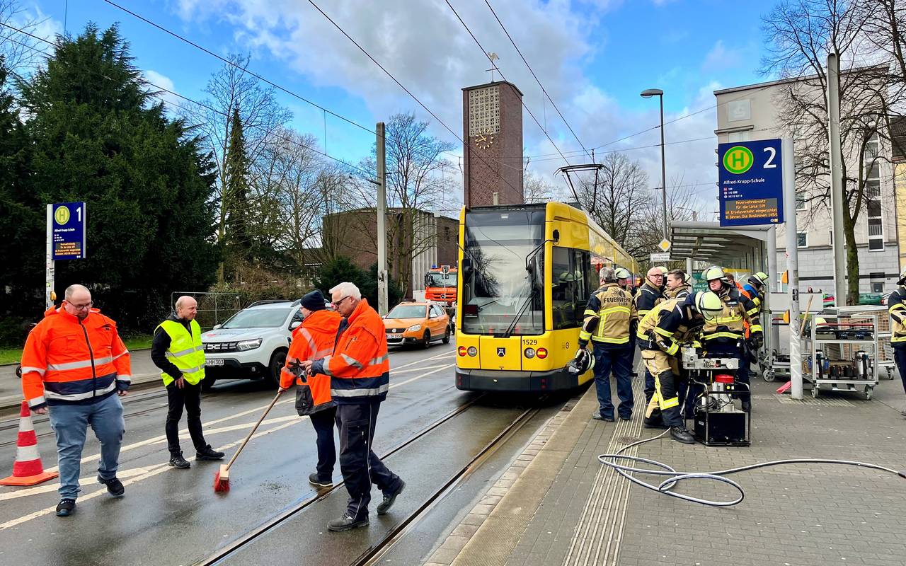 Ruhrbahn in Essen entgleist - Feuerwehr im Einsatz