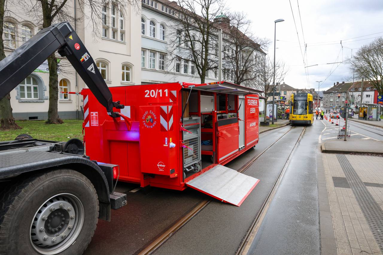 Entgleiste Bahn in Essen: Feuerwehr kommt mit Spezialwagen