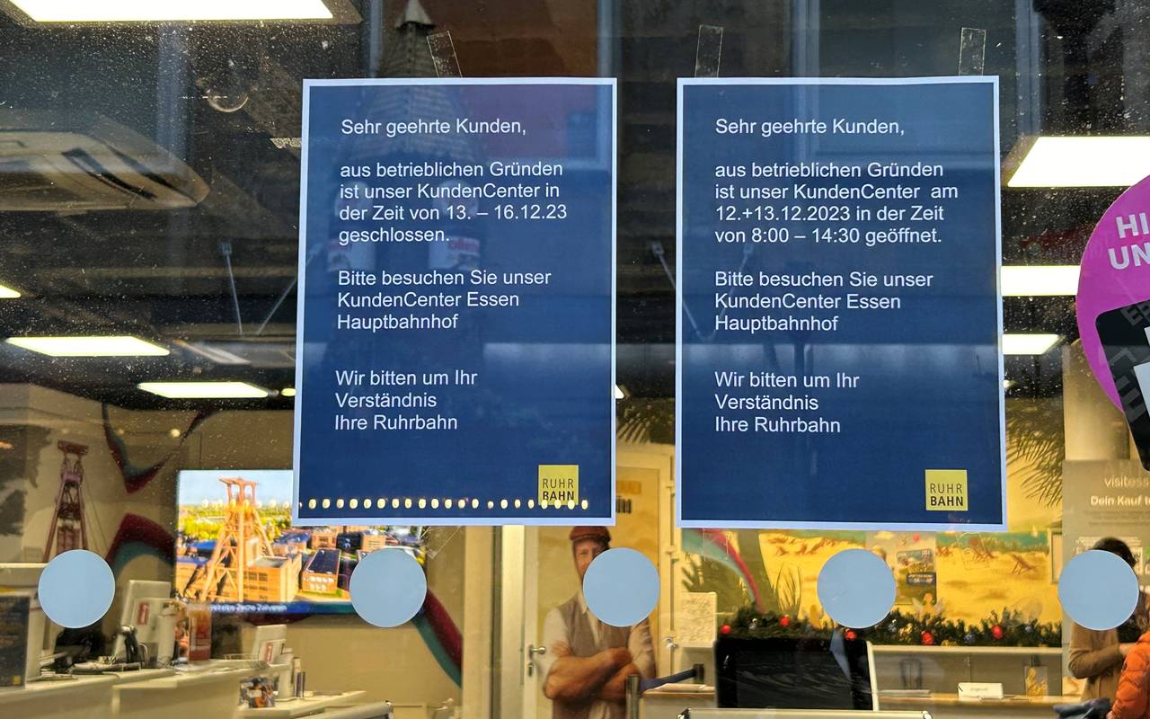 Ruhrbahn in Essen schließt kurzfristig Kundencenter