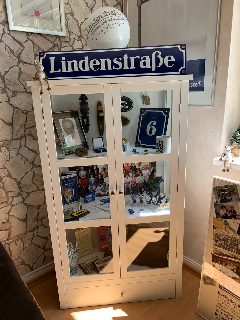 Auf 16 Quadratmetern hat sich André also seine eigene kleine Lindenstraße ins Wohnzimmer gebaut. Er bezeichnet dies als sein kleines Privat-Museum für seine Bekannte, Freunde und natürlich für sich selbst. Es war Andrés Wunsch, der Lindenstraße ein würdiges Andenken zu errichten. Das ist ihm wohl gut gelungen, schließlich befinden sich unter seinen ausgestellten Exponaten einige Raritäten. Als seinen größten Stolz bezeichnet der Essener die originale Briefkastenanlage, welche im Haus Nummer 3 der Serie hing und von der ersten bis zur letzten Folge zu sehen war. Außerdem beinhaltet seine Sammlung unter anderem das NARO-Schild des gleichnamigen Supermarktes, einen Stuhl aus dem Restaurant Akropolis oder ein Kleid der Figur Gabi Zenker. Das Kleid gehört übrigens Andrés Freundin, welche er erst durch die Serie kennengelernt hat und mit der er die Sammlung führt.