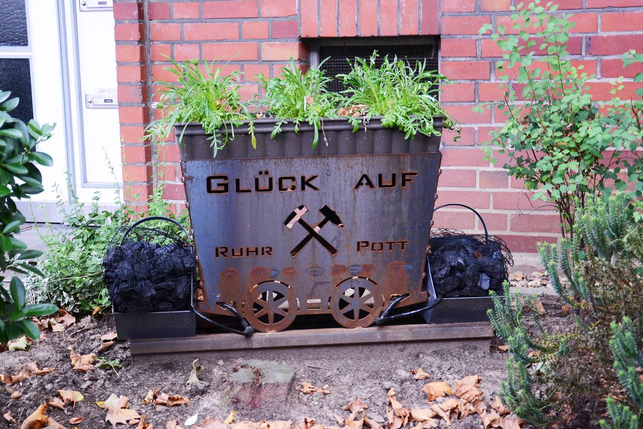 Vera Lüttenberg hat sich in ihrem Vorgarten in Steele eine kleine Zechenlandschaft gebaut. Highlight der Sammlung an der Straße Am Stadtgarten ist ein 1,20 Meter hoher Nachbau des Förderturms der Zeche Zollverein. Ihr Lebensgefährte bekomme immer Tränen in den Augen, wenn er Zollverein im Fernsehen sehe, sagte sie im Radio Essen-Interview und da hat sie den Doppelbock nachbauen lassen und in den Vorgarten gestellt. Außerdem gibt es dort noch einen Kohlezug, eine Lore und einen Bergmann.