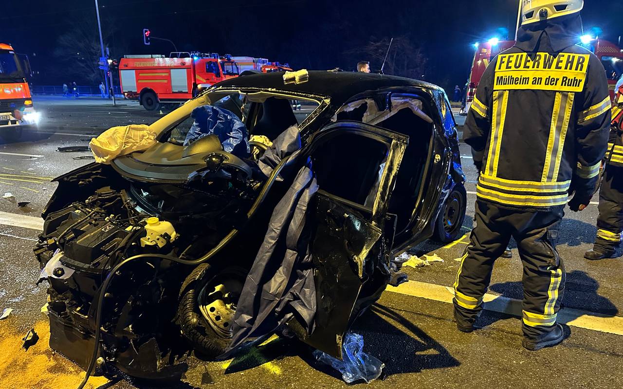An der Stadtgrenze zu Essen hat es am Donnerstagabend (07. März) einen schweren Verkehrsunfall gegeben. Eine Frau ist gestorben, vier Menschen wurden schwer verletzt.