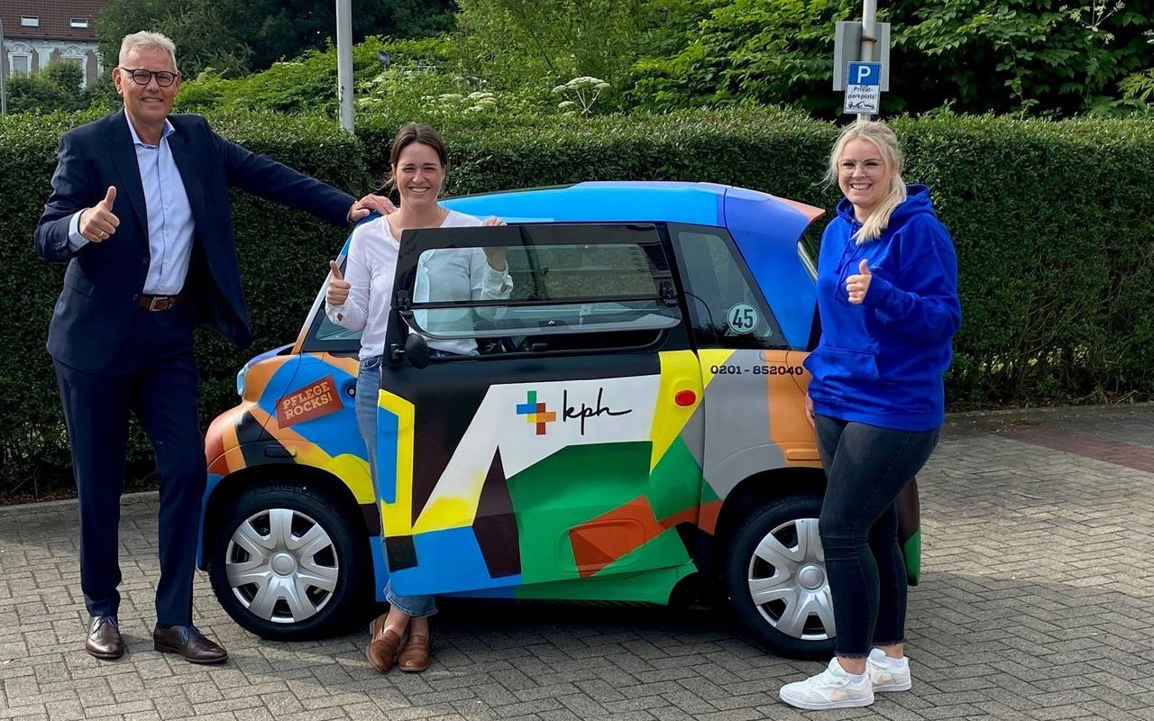 Ein Künstler aus Essen hat den neuen Stadtflitzer vom Katholischen Pflegedienst gestaltet. Die bunten Farben sollen für die Vielfalt des Pflegedienstes stehen.
