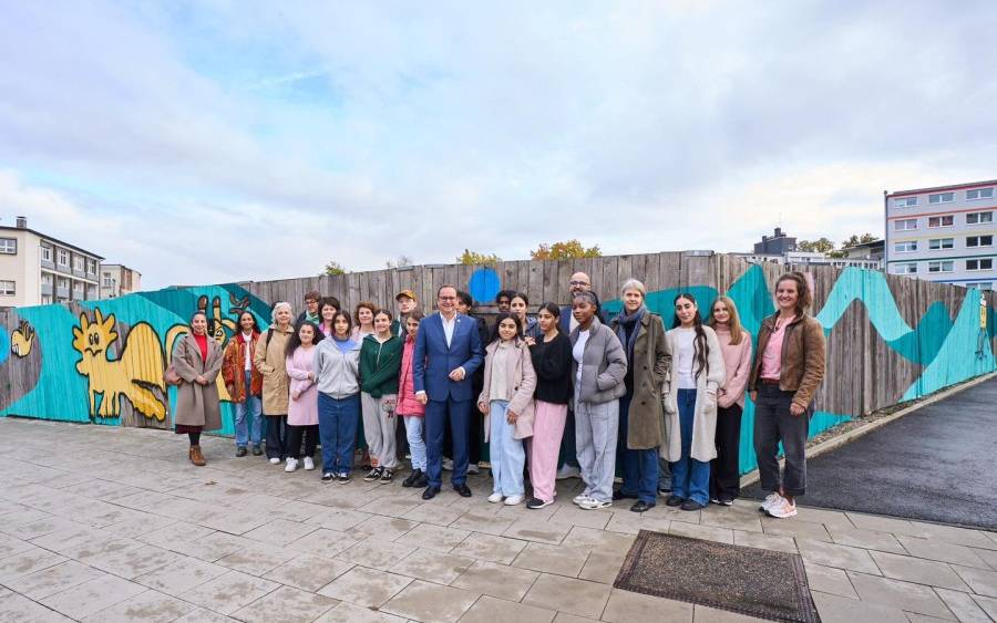 In Essen wurde der Bauzaun am "Verwaltungscampus Steeler Tor" schöner gemacht. Schülerinnen und Schüler haben sich darum gekümmert.