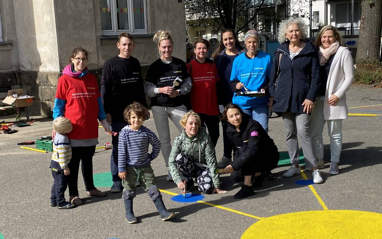 Schülerinnen und Schüler der Elisabeth-Grundschule in Frohnhausen können sich über einen verschönerten Schulhof freuen. Es gibt neue Spielmarkierungen und neue Spielflächen. Die sind mit den Jahren durch Regen, Schnee und Sonne stark verblasst. Hinter dem Projekt stecken viele ehrenamtliche Helferinnen und Helfer. Sie haben die alten Markierungen aufwendig gelöst und neue aufgetragen. Das hat sehr lange gedauert. Jetzt machen Spiele wie "Himmel und Hölle", Seilspringen und andere Hüpfspiele allerdings wieder mehr Spaß. Gefördert wurde das Projekt von Westenergie mit einer Summe von über 2000 Euro.