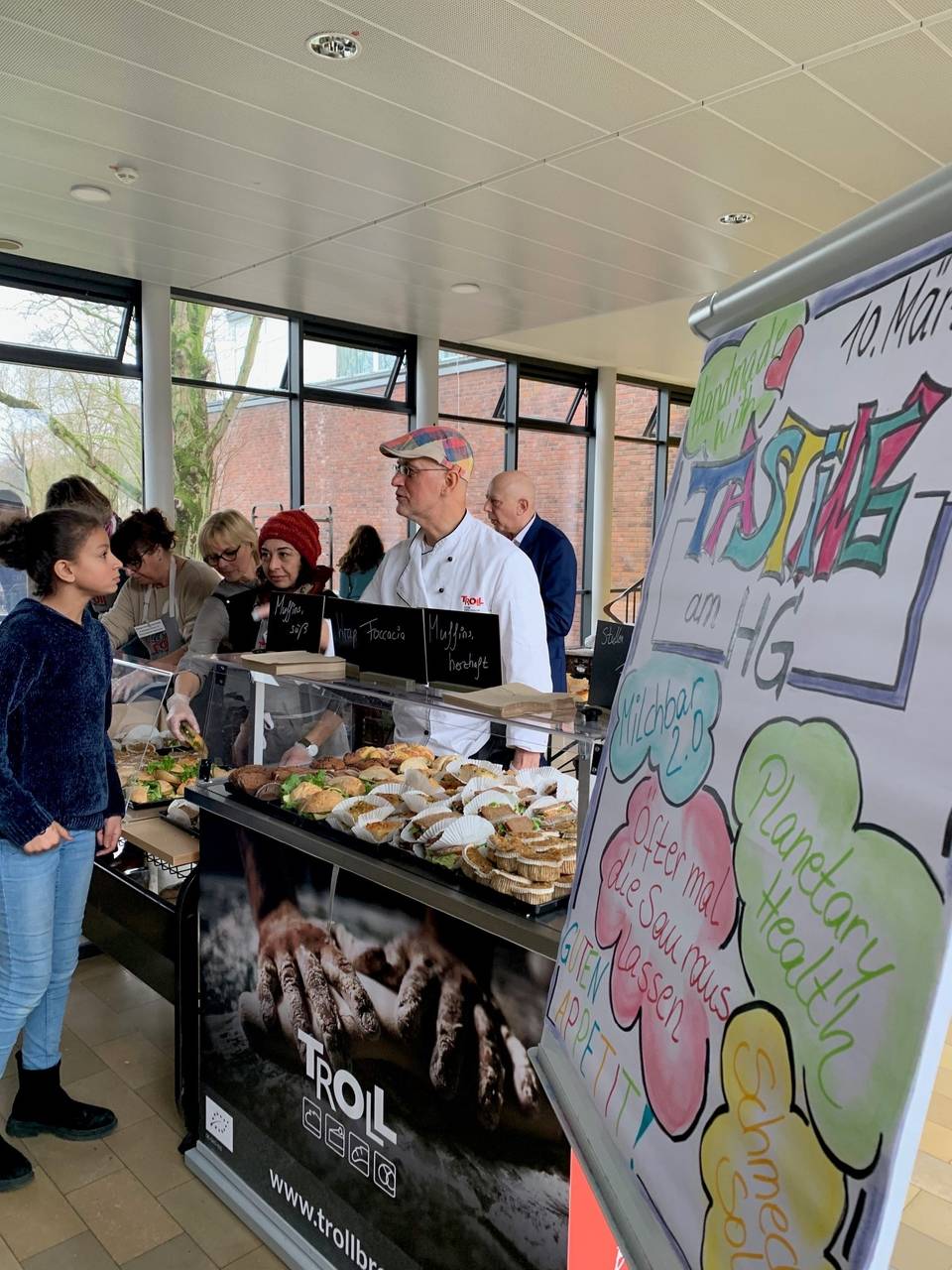 Am Helmholtz-Gymnasium in Essen-Rüttenscheid startete am Freitag (10. März) das Pilotprojekt "SchoolFood4Change". Im Foyer der Schule wurden, in Kooperation mit einer Bio-Bäckerei, kostenlose und gesunde Pausensnacks verteilt. Statt Schokoriegel und Kakao gab es Wraps mit frischem Gemüse, Muffins mit wenig Zucker und Vollkornschnitten. Ziel ist es den Schülerinnen und Schülern gesunde und nachhaltige Ernährung aus regionalen und saisonalen Zutaten nahezubringen. Dabei spielen die Themen Umwelt und Nachhaltigkeit eine wichtige Rolle. Es wird überlegt, die gesunden Snacks regelmäßig an der Schule anzubieten. Dabei will man sich vor allem an den Geschmäckern der Kinder orientieren, erzählt Karin Schmidt vom Ernährungsrat Essen im Radio Essen-Interview.