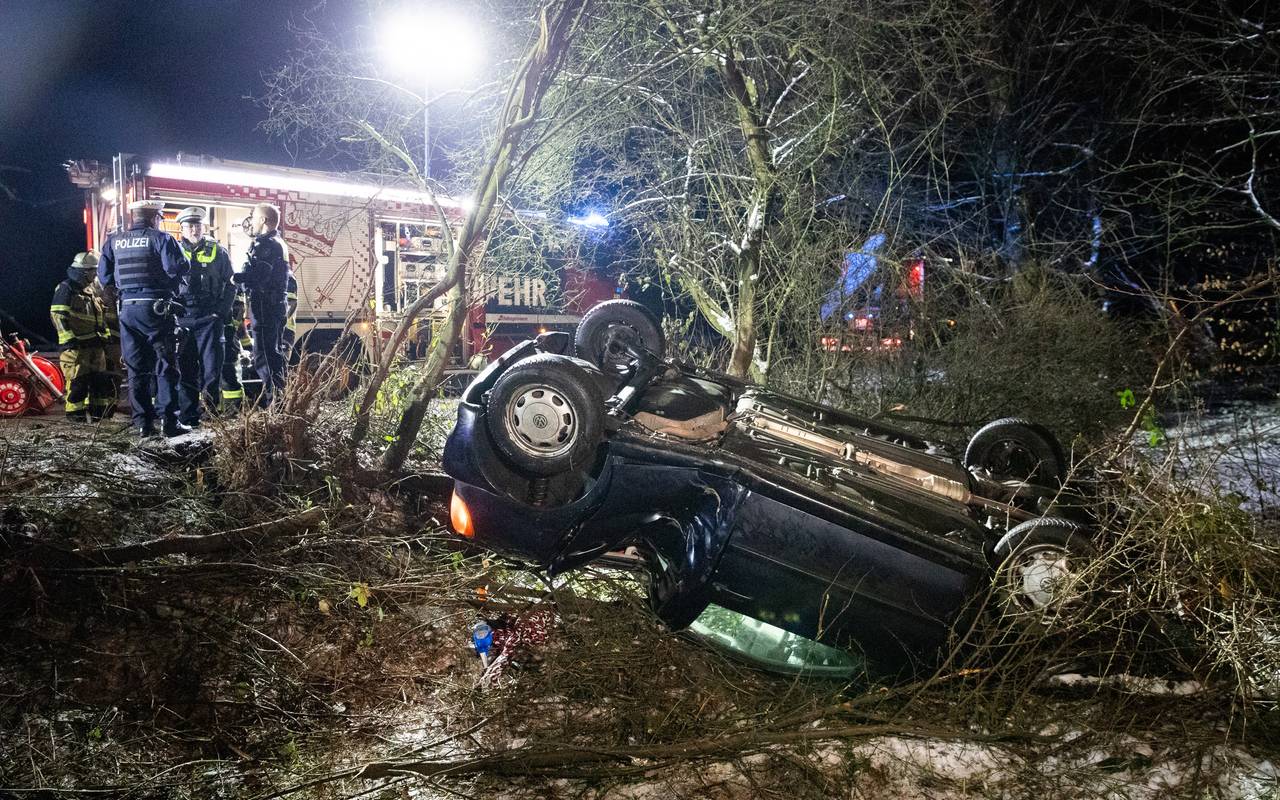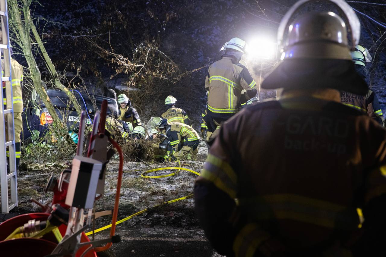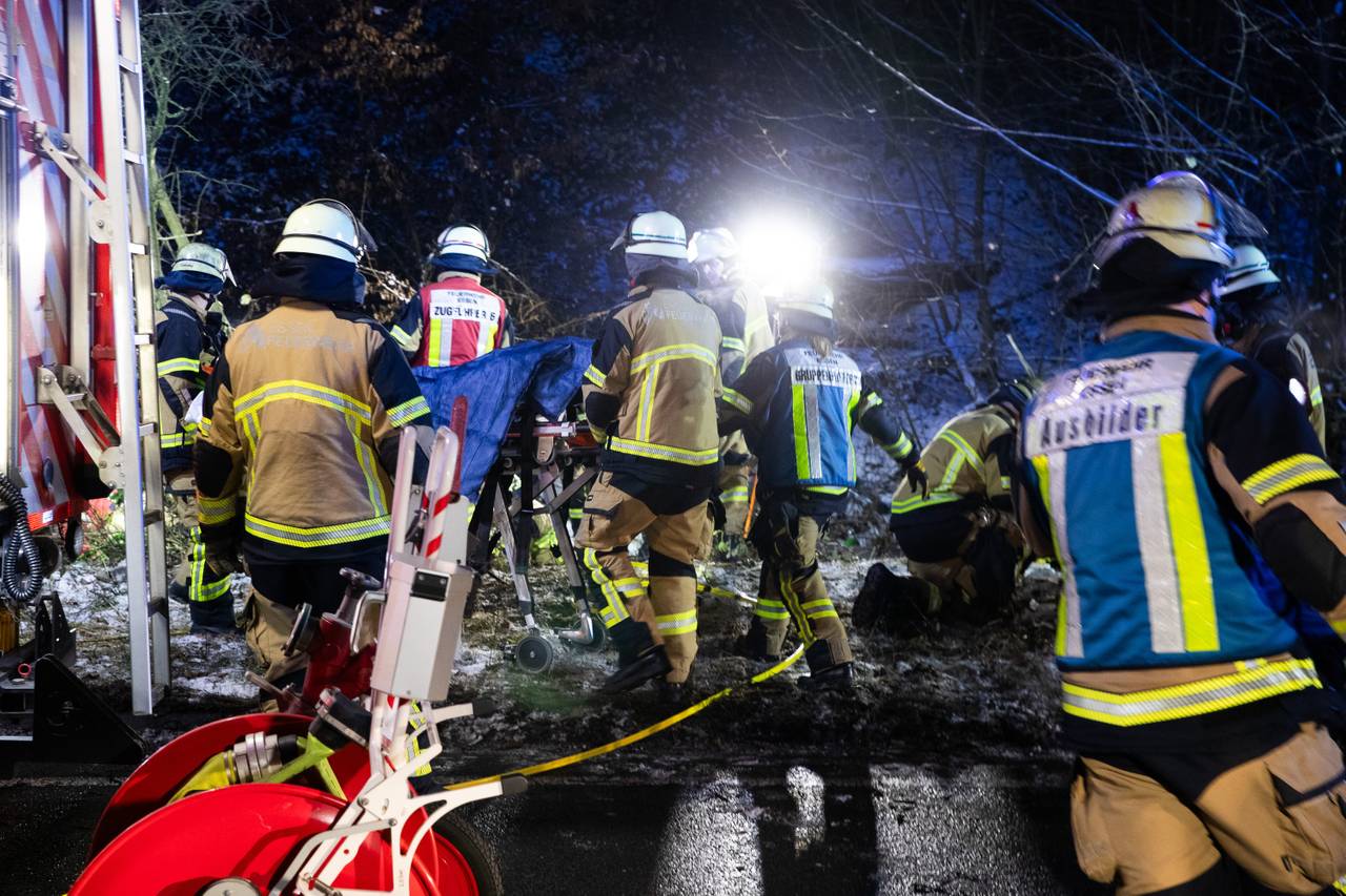 In der Nacht zum Samstag (20. Januar) ist in Essen ein Auto schwer verunfallt. Eine Person wurde dabei aus dem Auto geschleudert und anschließend eingeklemmt. Die Feuerwehr musste mit schwerem Gerät ran.