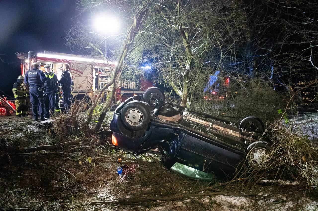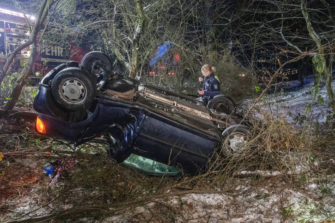 In der Nacht zum Samstag (20. Januar) ist in Heisingen ein Auto schwer verunfallt. Es ist auf der Wuppertaler Str. auf Höhe der Kreuzung Ostpreußenstraße von der Fahrbahn abgekommen, hat sich überschlagen und ist dann in einen Graben gerutscht und auf dem Dach gelandet. Ein zufällig vorbeifahrender Krankenwagen konnte schnell erste Hilfe leisten. Die Beifahrerin wurde bei dem Unfall aus dem Auto geschleudert und anschließend unter ihm eingeklemmt. Die Feuerwehr musste sie mit schwerem Gerät befreien. Dann kam sie ins schwer verletzt ins Krankenhaus. Die Fahrerin saß trotz des Unfalls noch im Auto und wurde nicht verletzt. Wie es zu dem Unfall kommen konnte, ermittelt jetzt die Polizei.