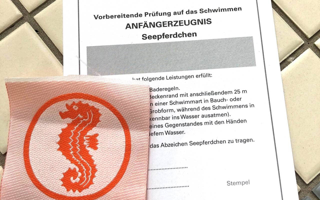 Unabhängig vom Alter gilt: Das Frühschwimmerabzeichen (Seepferdchen) ist noch kein Nachweis für sicheres Schwimmen. Wer [...] nur das Seepferdchen erworben hat, muss weiterhin intensiv beim Schwimmen beaufsichtigt werden.