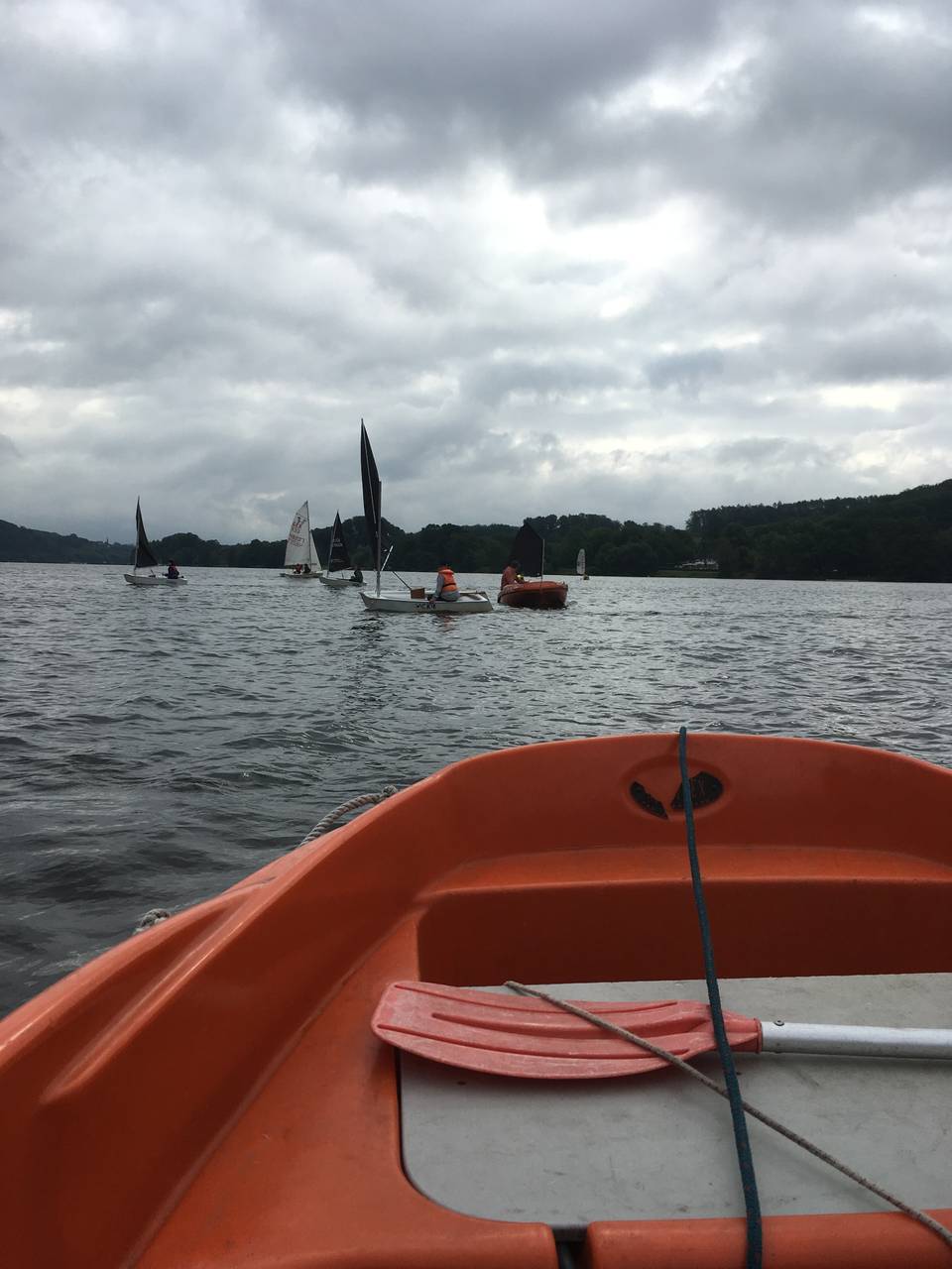 Die Segel flattern im Wind, die weißen Boote liegen am Steg und werden segelfertig gemacht. Die jungen Teilnehmer strahlen und freuen sich auf die leichte Brise auf dem See. Die ersten legen los und stoßen sich vom Rand ab. Sie steuern in Richtung quietschoranger Tonne, da wird umgedreht: „Klar zur Wende!“ „Ist klar“, antwortet der Vordermann. „Reh!“ ruft der Steuermann und legt das Ruder um. Ida hat Radio Essen in ihrem Boot mitgenommen.