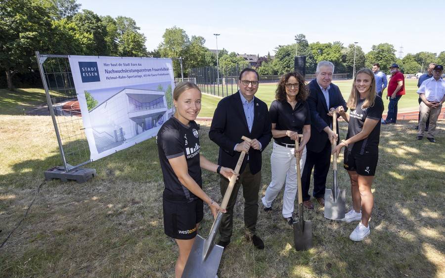 Auf der Bezirkssportanlage Helmut Rahn in Essen-Frohnhausen entsteht ein neues Funktionsgebäude. Damit wird der Frauenfußball in Essen bald deutlich aufgewertet.