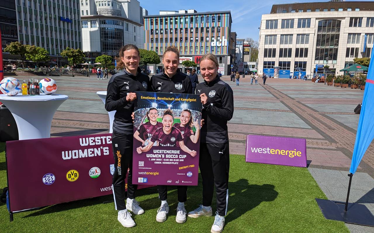 Die Fußballerinnen der SGS Essen nehmen an einem Kleinfeldfußball-Turnier in der Innenstadt teil. Die Spielerinnen freuen sich. Der Eintritt ist kostenlos.