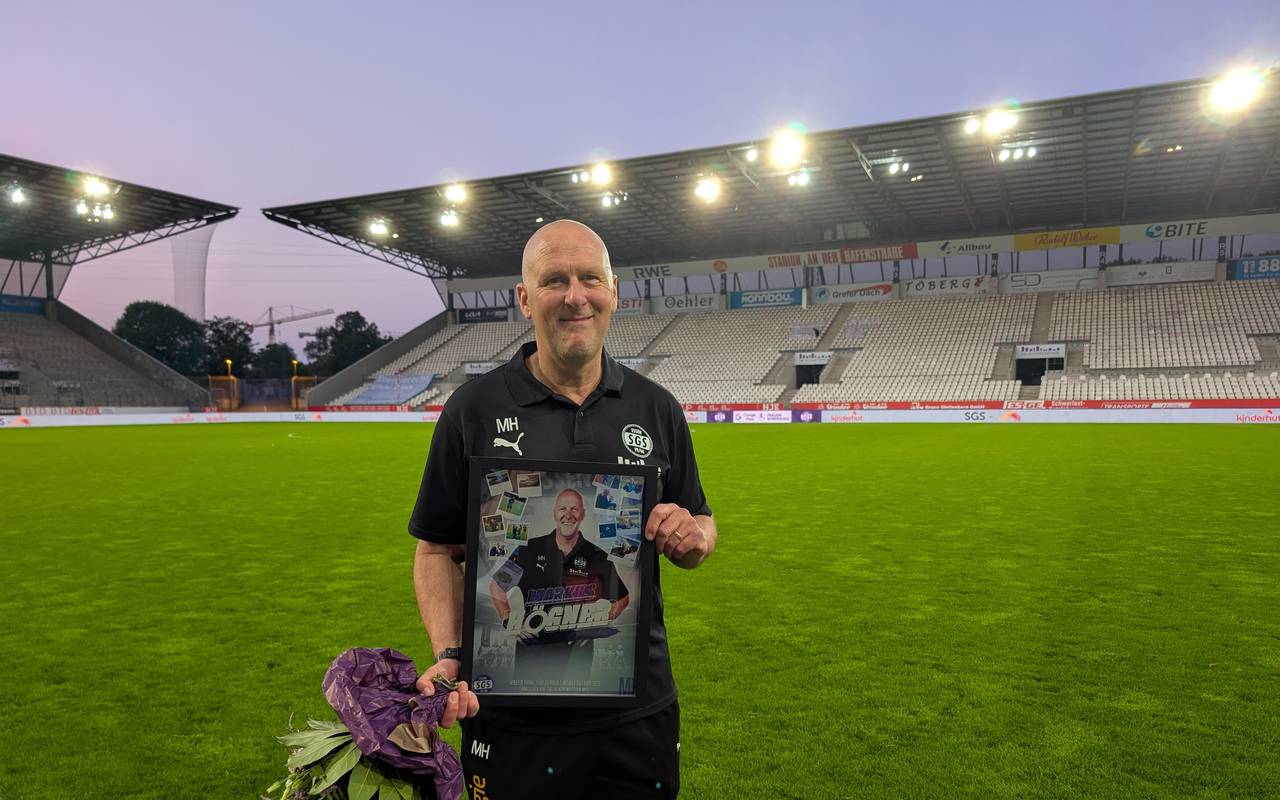 Bei der SGS Essen wurde es am Freitagabend (2. Mai) emotional. Beim letzten Heimspiel standen mehrere Verabschiedungen an. Unter anderem war es das letzte Spiel in Essen vom langjährigen Trainer Markus Högner sowie Sophia Winkler, der verletzten Nummer 1 im Tor. Vorher wurde aber noch Fußball gespielt. Dabei gab es auch ein kleines Geschenk: Im Tor stand Aline Allmann, Essens etatmäßige dritte Torhüterin. Einerseits wohl eine Belohnung für ihren Einsatz in der Kabine und im Training, andererseits wohl auch ein Abschiedsgeschenk, denn Allmann wird nicht mehr für die SGS spielen. Sie bleibt dem Verein aber als Athletiktrainerin erhalten.
