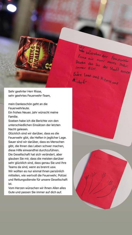 Feuerwehr Essen bekommt viel Unterstützung nach der Silvester-Nacht