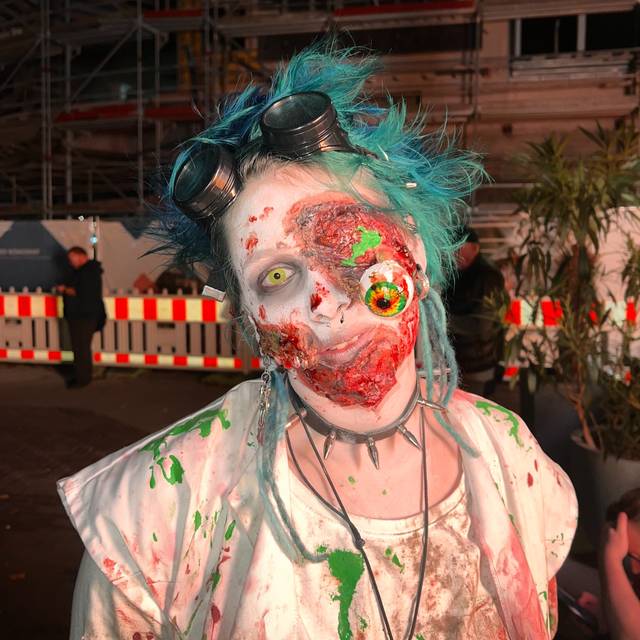 Mal sind es vier Monate, mal vier Stunden. Einige Kostüme sahen wie von professionellen Maskenbildern aus und genau darum ging es am Montagabend auch. Mandy aus Vogelheim arbeitet schon das ganze Jahr an ihrem Kostüm. Halloween ist das einzige Event auf das sie sich das ganze Jahr lang richtig freut. Zusammen mit ihren Freundinnen überlegt und plant sie bereits ein Jahr vorher welches Kostüm sie tragen will. Es ist aber nicht nur das Kostüm, sondern der ganze Look, der so aufwendig ist. Dazu gehört immer eine perfekt passende Maske, erklärt sie weiter. Die meisten ihrer Masken formt sie aus Flüssiglatex. Die passen dann genau auf ihr Gesicht. Dieses Jahr geht sie als Zombie, dem eine Gesichtshälfte fehlt. Das Abschminken hingegen dauert meist nur eine Stunde und dann ist alles schon wieder vorbei, aber das nimmt Mandy gerne in Kauf. Und nach diesem Abend beginnen schon die nächsten Vorbereitungen für das kommende Halloween, erzählt sie.