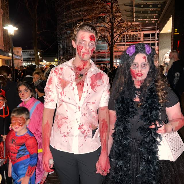 Blutüberströmte Zombies, Spinnenfrauen mit acht Augen und gruselig lachende Clowns, sowas und noch vieles mehr gab es gestern Abend in der Innenstadt zu sehen. Beim Zombiewalk sind mehrere tausend Menschen über die Kettwiger Straße gegeistert. Die Parade ist um 19 Uhr am Willy-Brandt-Platz Ecke Lindenallee gestartet. Angeführt wurde sie von einem lauten Trommeln. Die Band Band „Drums of Folkwang“ hat dort für die passende gruselige Stimmung gesorgt. Der Walk ging über die Kettwiger Straße bis zur Marktkirche und zurück. Nach knapp zwei Stunden ging die Halloween-Party dann auf dem Kardinal-Hengsbach-Platz weiter. Mit dabei waren dieses Jahr auch viele Niederländer. Sie sind extra angereist um die Parade durch die Innenstadt nicht zu verpassen.