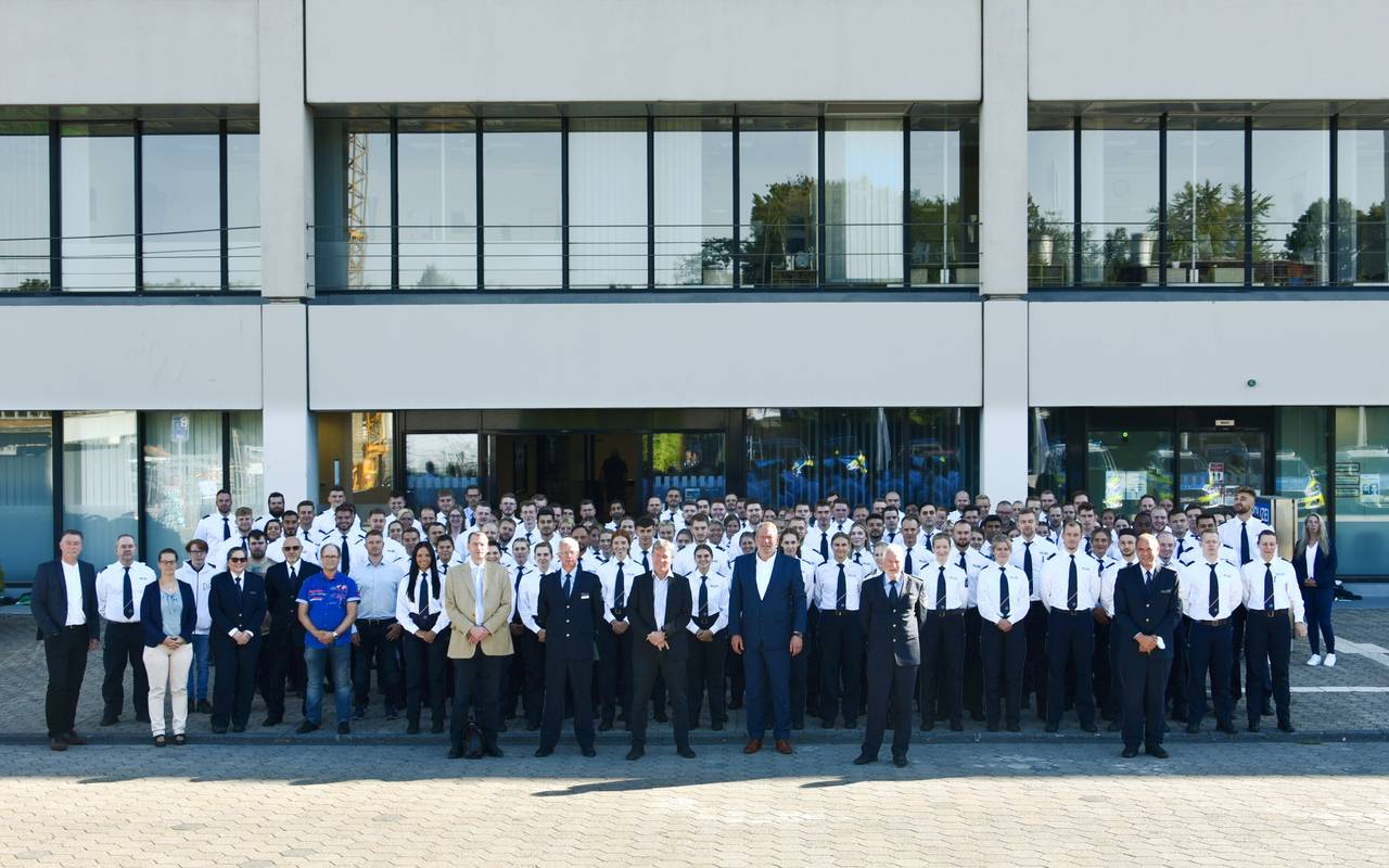 Polizeipräsident Frank Richter betonte in seiner Ansprache: "Ich freue mich sehr darüber, Sie als neue Mitarbeiterinnen und Mitarbeiter in unserer Behörde begrüßen zu dürfen. Allen Polizeikommissaren und Polizeikommissarinnen wünsche ich einen gelungenen Start in unserer Behörde. Ich hoffe, dass Sie erfahrene und unterstützende Kolleginnen und Kollegen an Ihrer Seite haben und stets gesund nach Hause kommen".